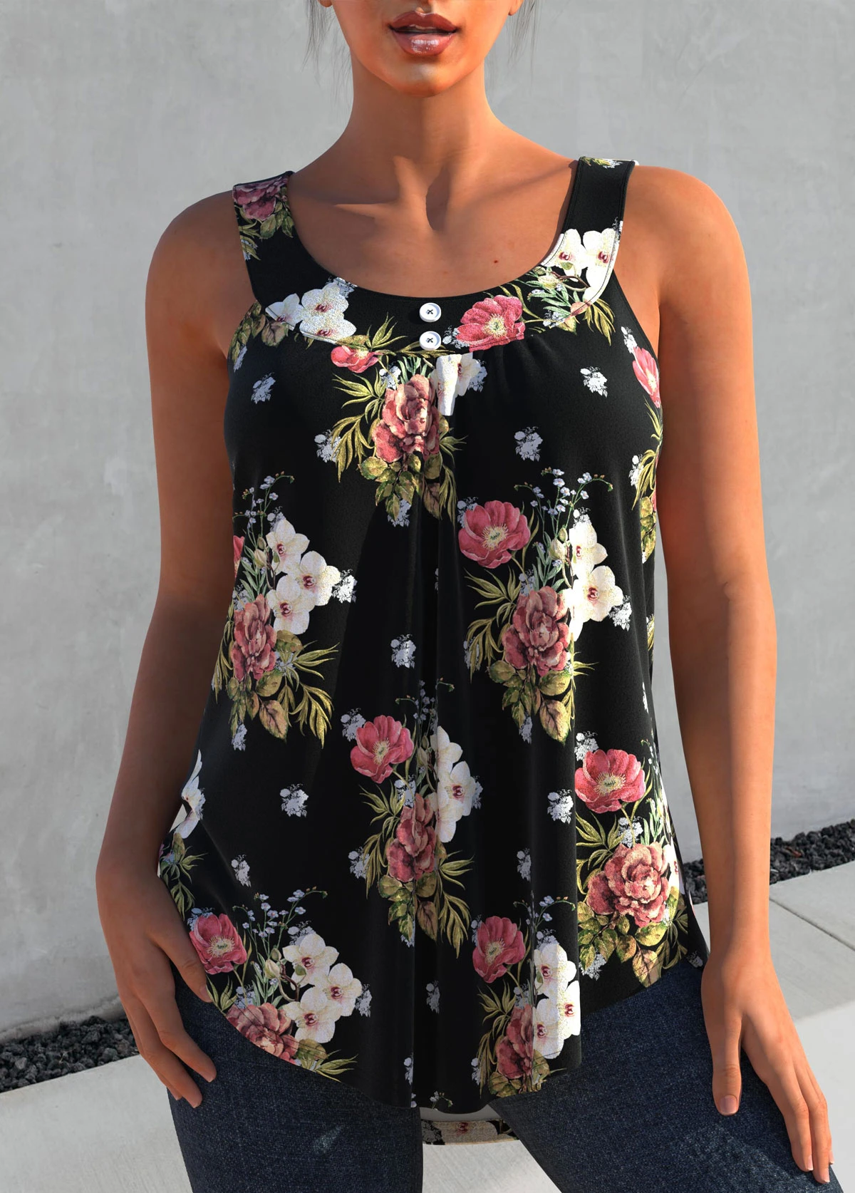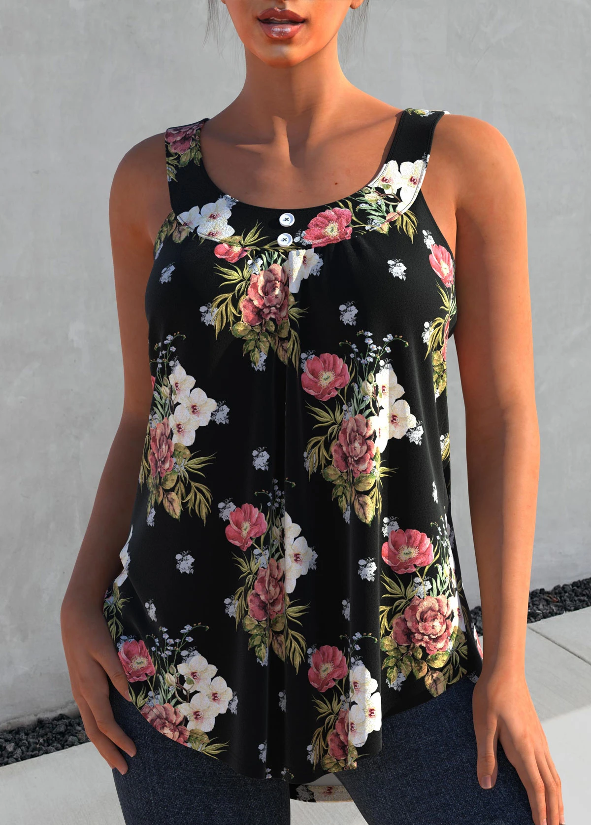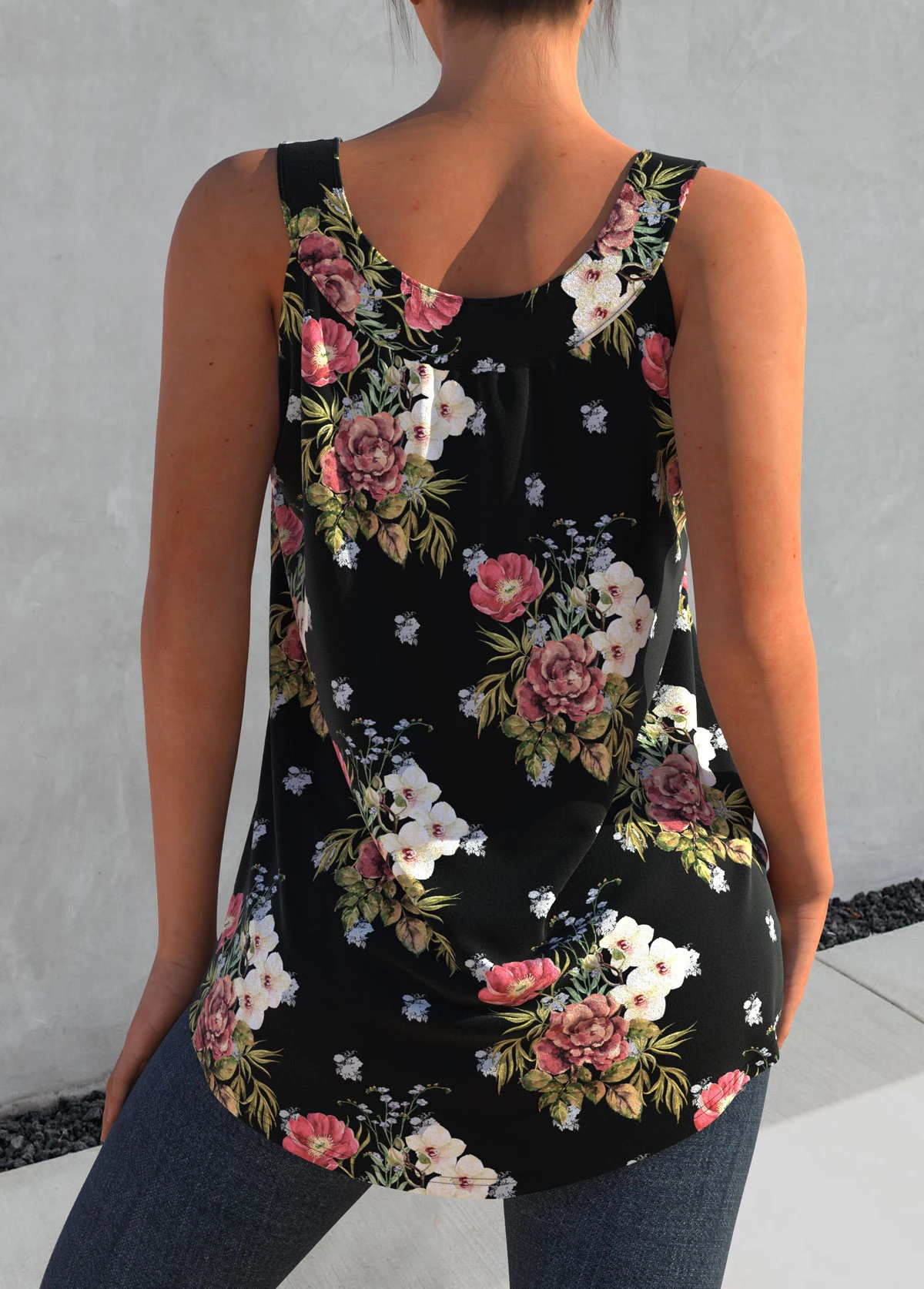 Black Floral Print Wide Strap Tank Top