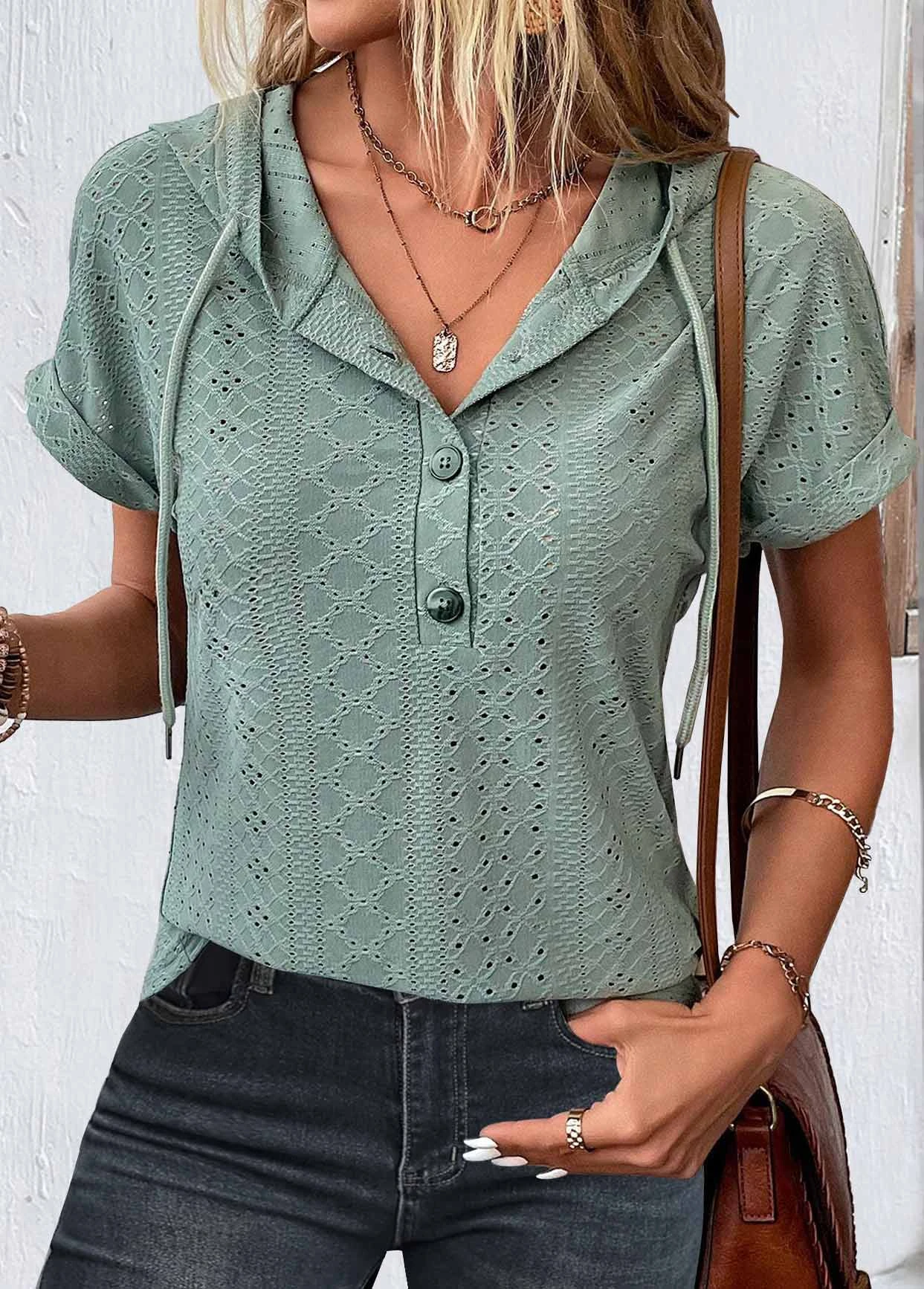 Be the first to review “Button Hooded Short Sleeve Sage Green Blouse” Cancel reply