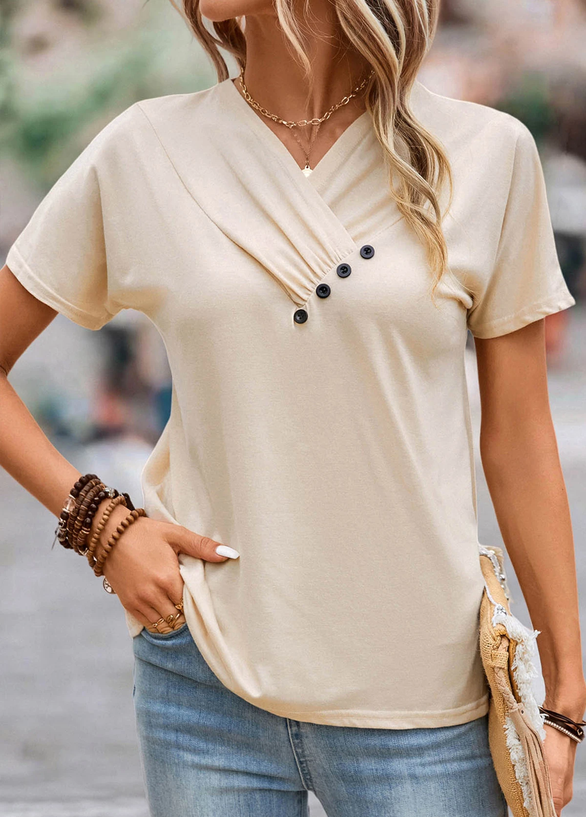 Be the first to review “Button V Neck Light Camel T Shirt” Cancel reply