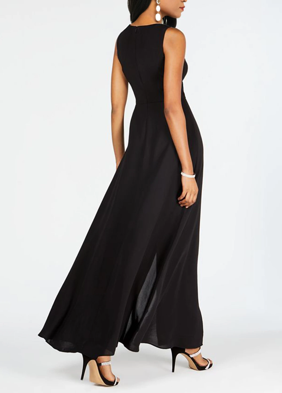 Contrast Black Round Neck Sleeveless Jumpsuit