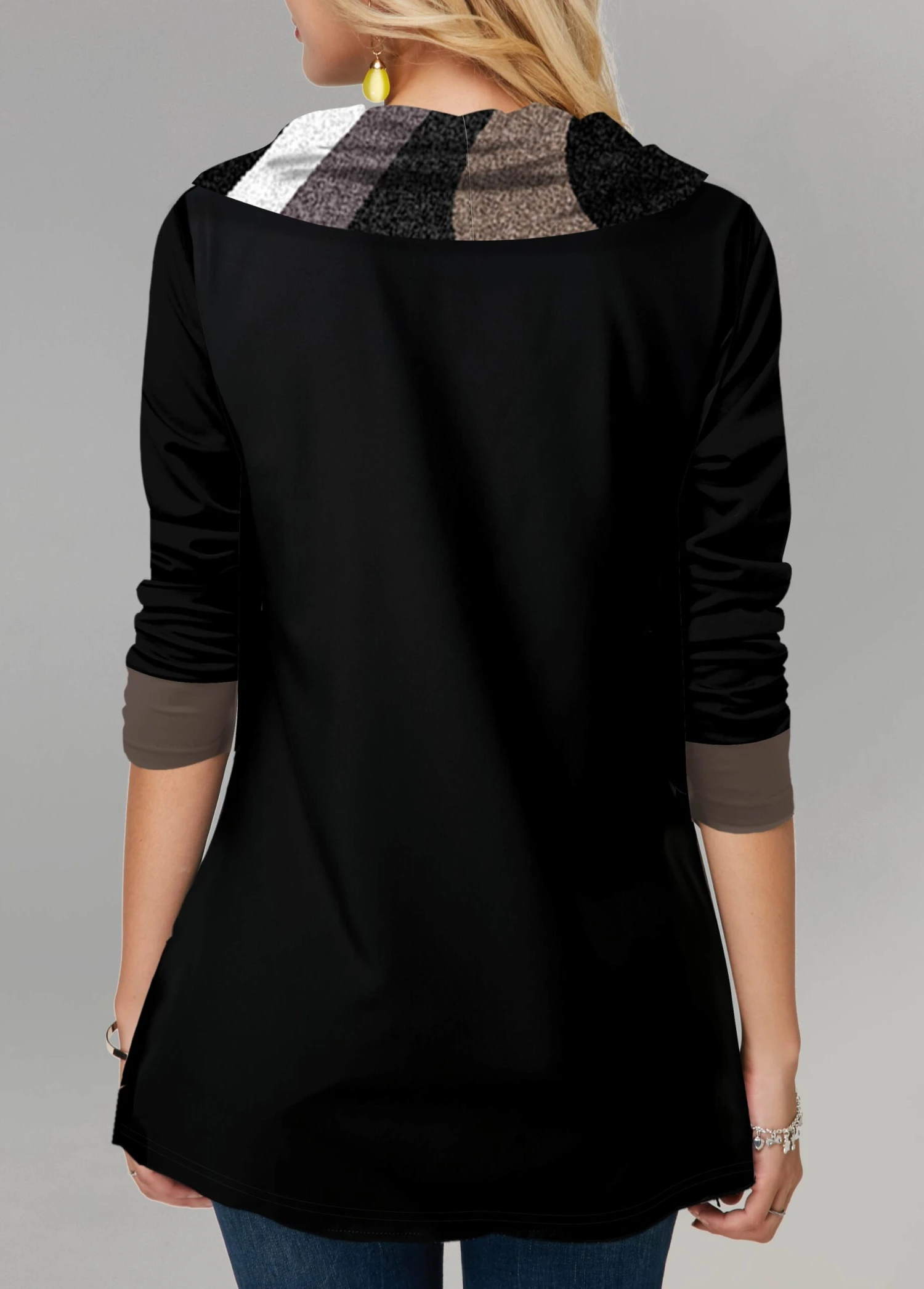 Be the first to review “Contrast Color Decorative Button Black Cowl Neck Sweatshirt” Cancel reply