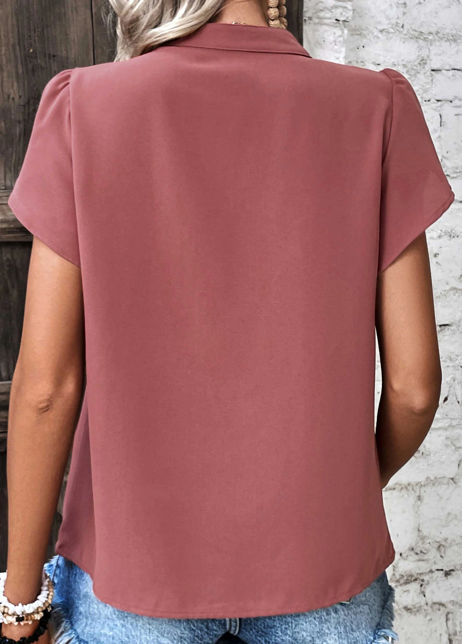Dark Reddish Purple Split Neck Patchwork Blouse