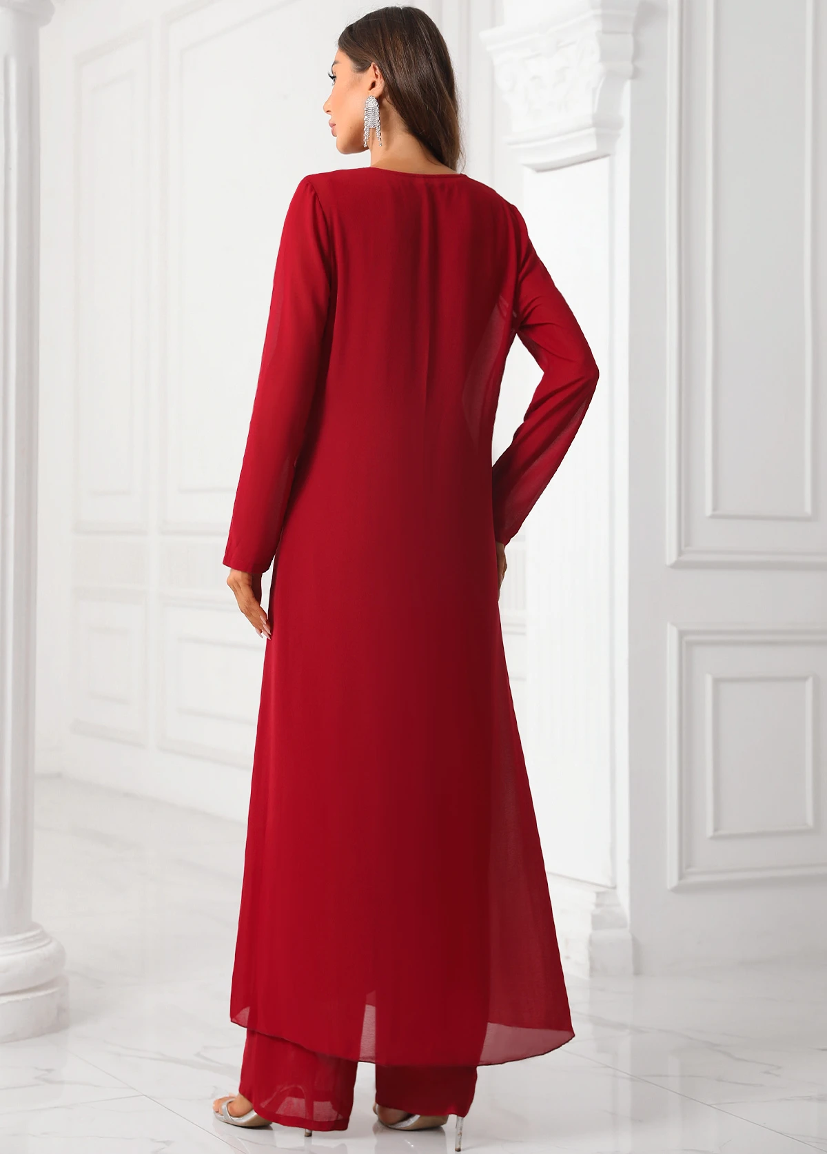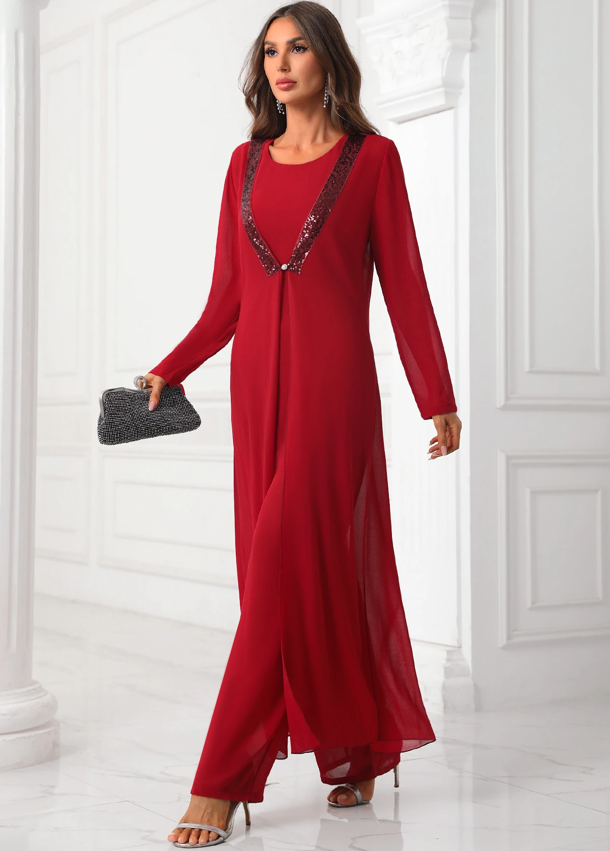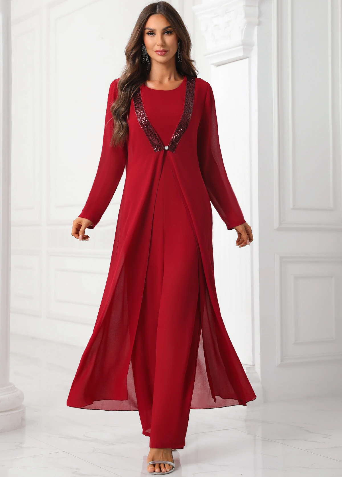 Be the first to review “Deep Red Round Neck Sequin Jumpsuit And Cardigan” Cancel reply