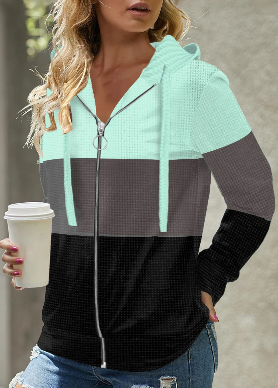 Drawstring Long Sleeve Zipper Closure Hoodie