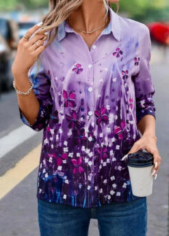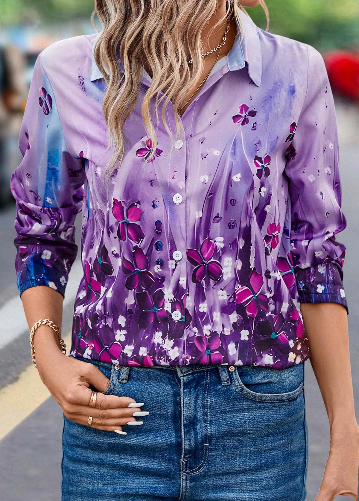 Be the first to review “Floral Print Button Purple Shirt Collar Blouse” Cancel reply