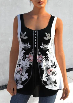 Floral Print Faux Two Piece Color Block Tank Top