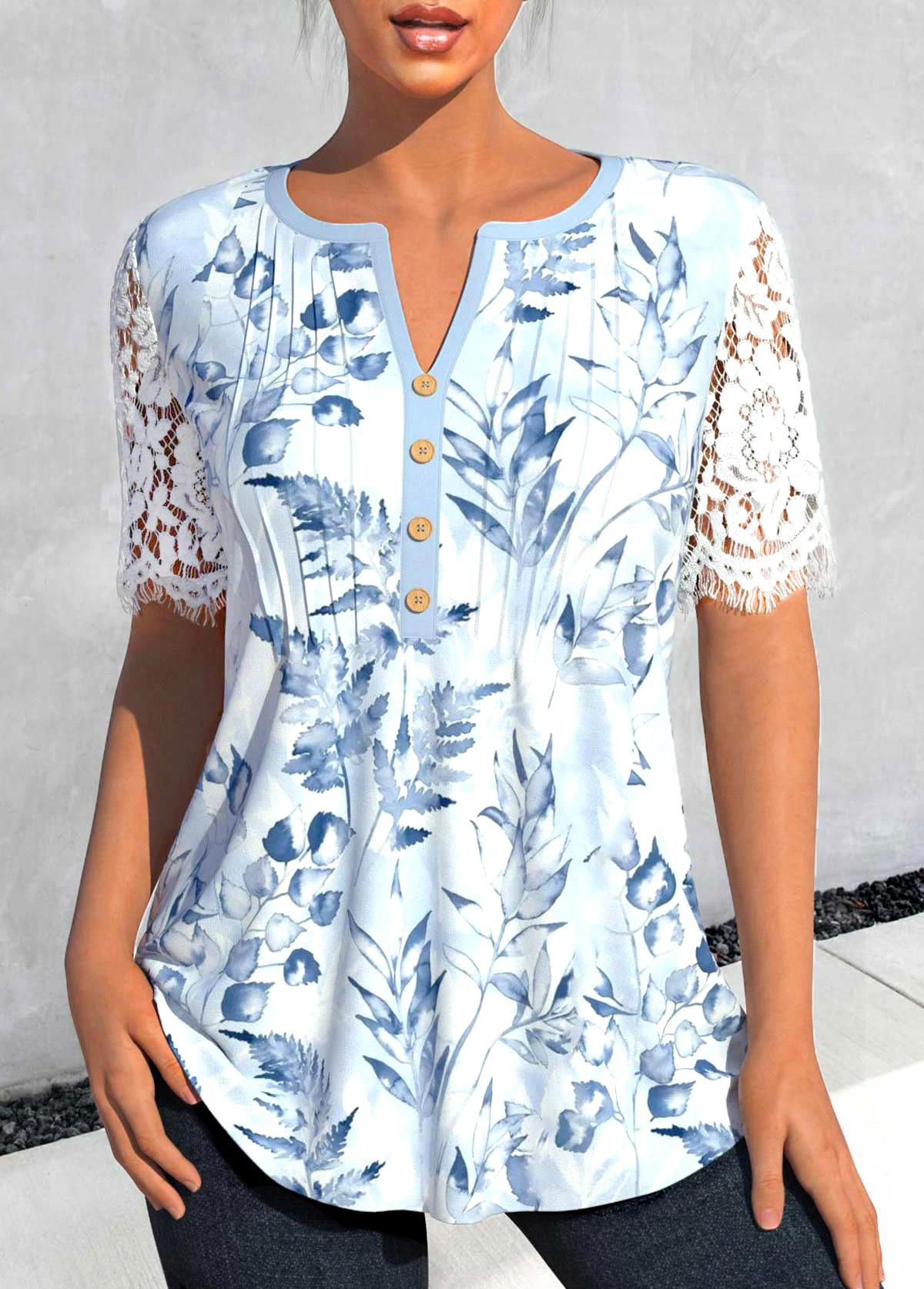 Be the first to review “Floral Print Lace Light Blue Split Neck Blouse” Cancel reply