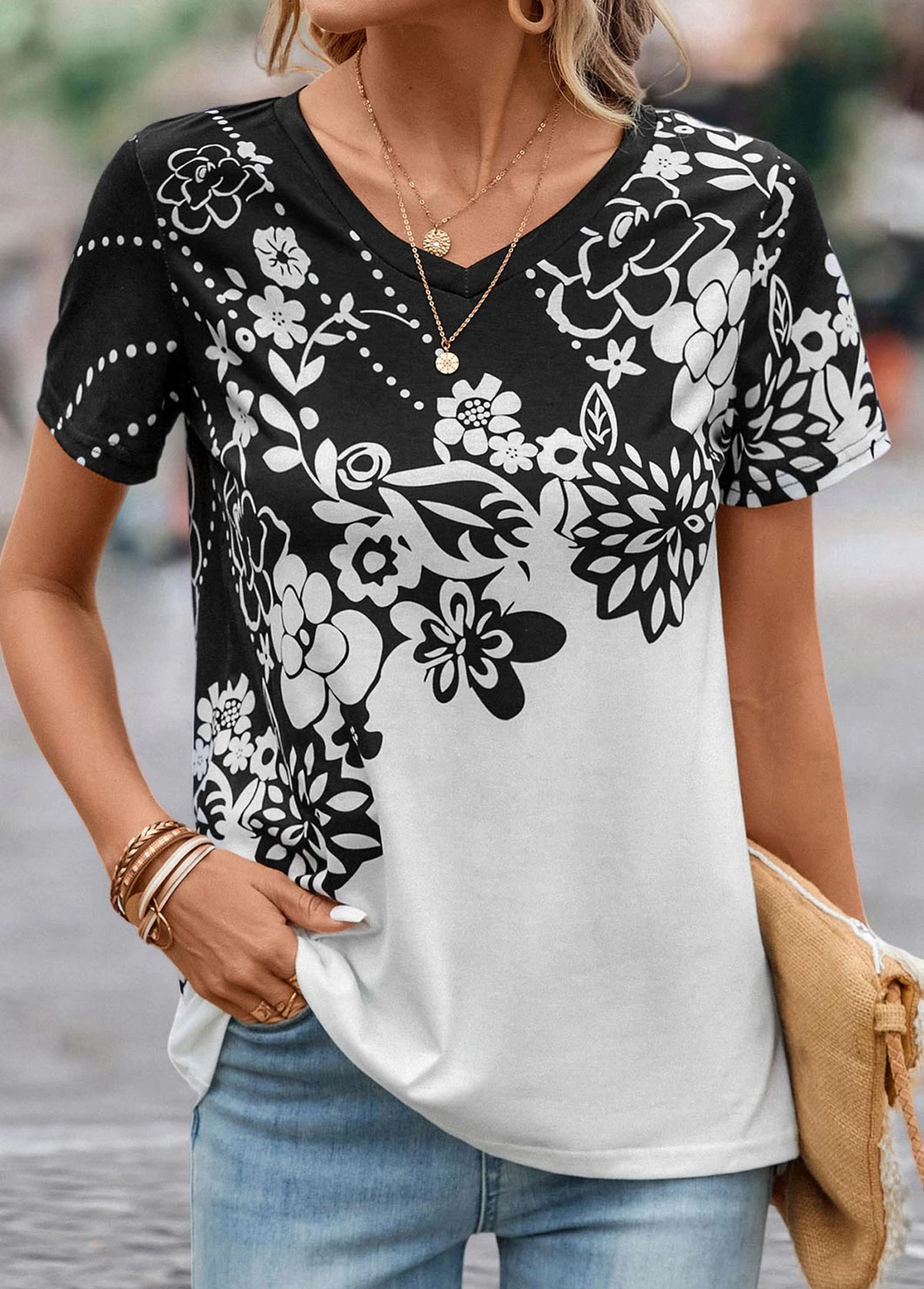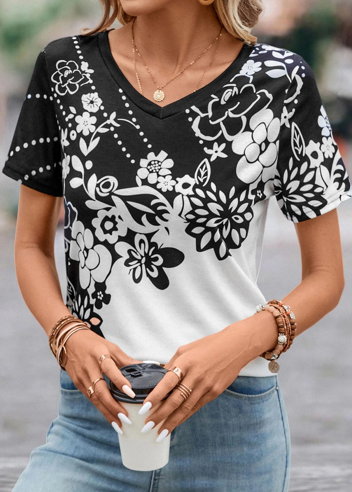Be the first to review “Floral Print Lightweight Black V Neck T Shirt” Cancel reply