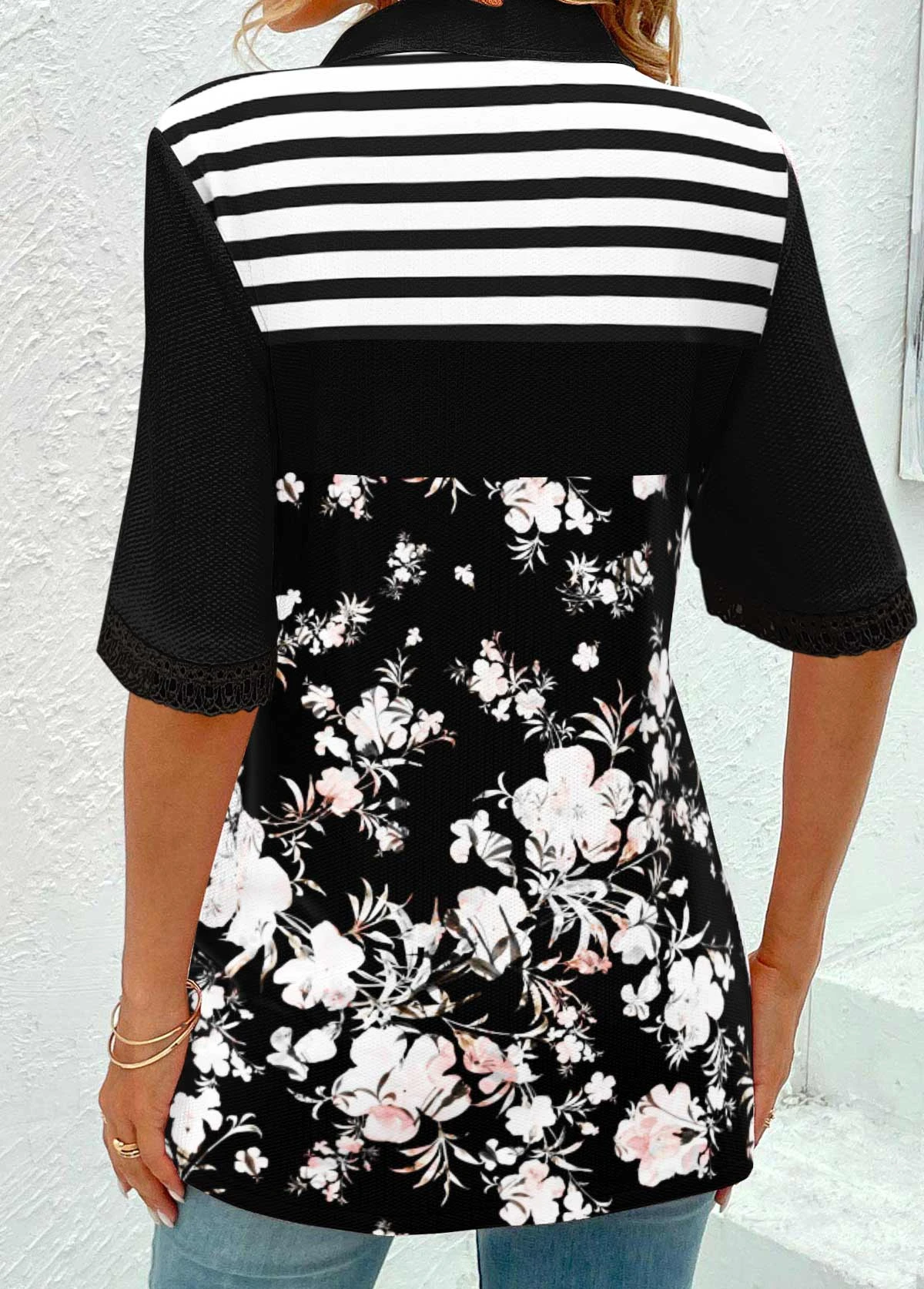 Be the first to review “Floral Print Patchwork Black Half Sleeve T Shirt” Cancel reply