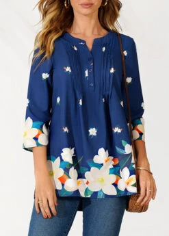 Be the first to review “Floral Print Split Neck Navy Blue Blouse” Cancel reply