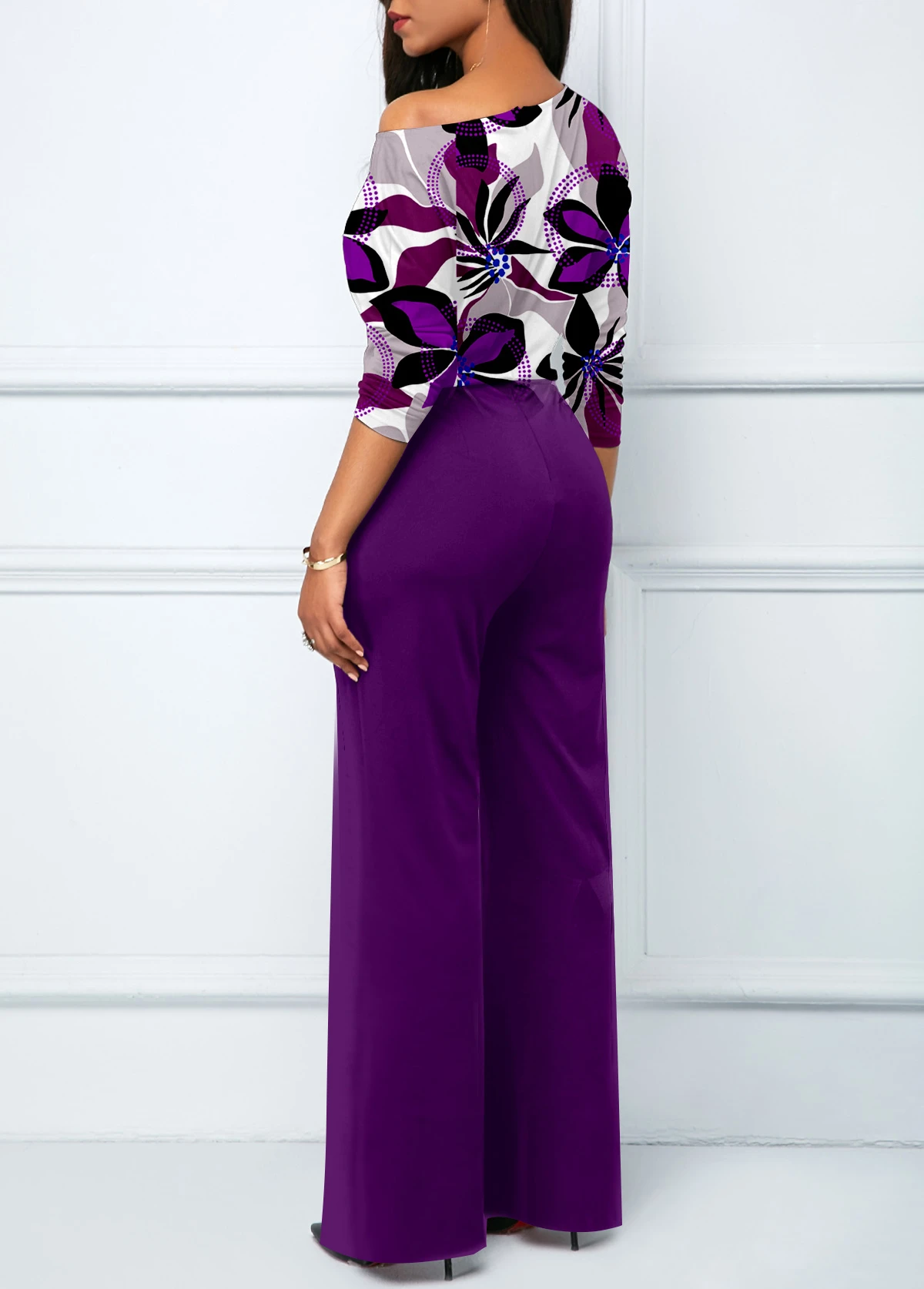Be the first to review “Floral Print Split Purple Long Boat Neck Jumpsuit” Cancel reply