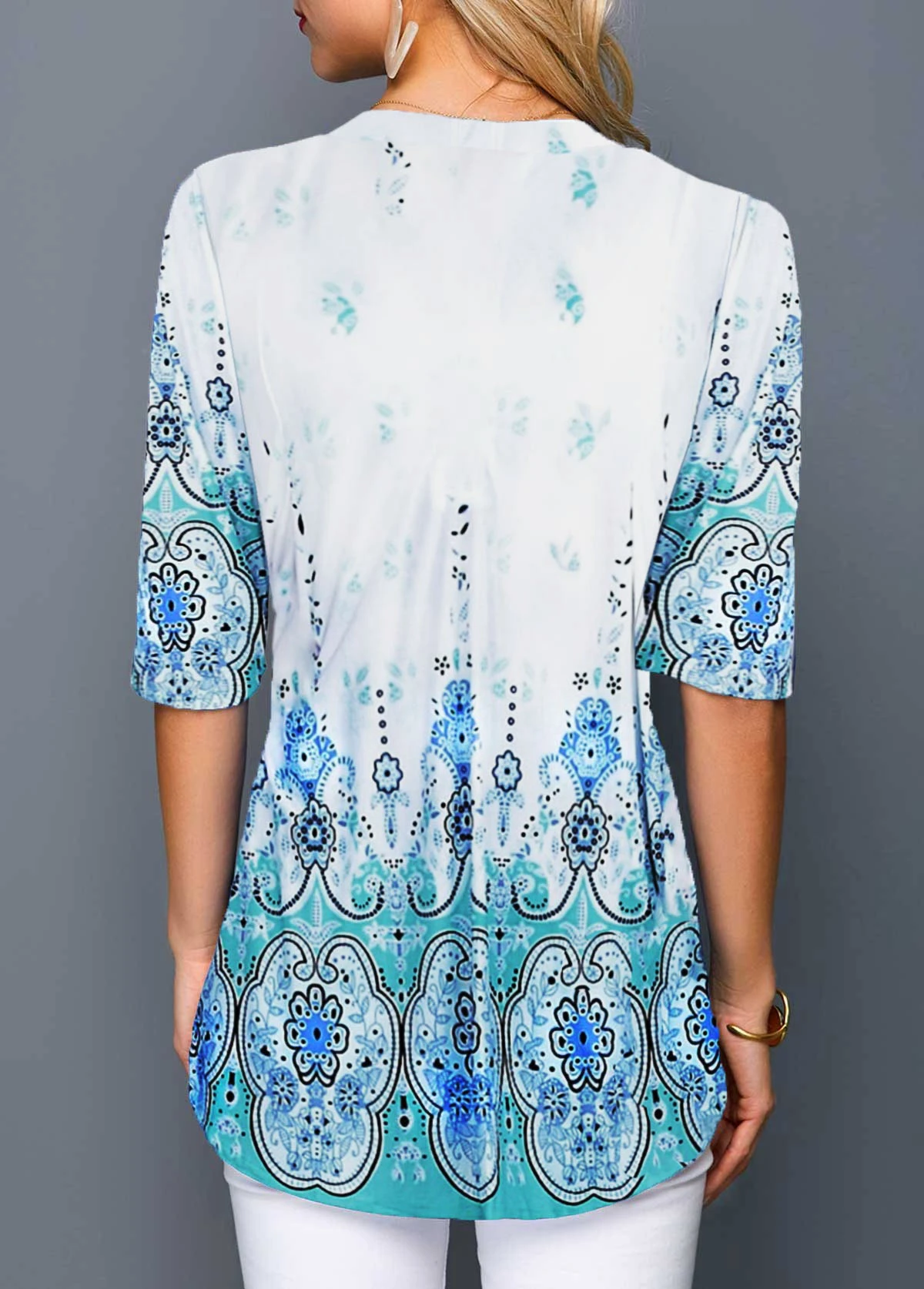 Be the first to review “Half Sleeve Tribal Print Split Neck Blouse” Cancel reply