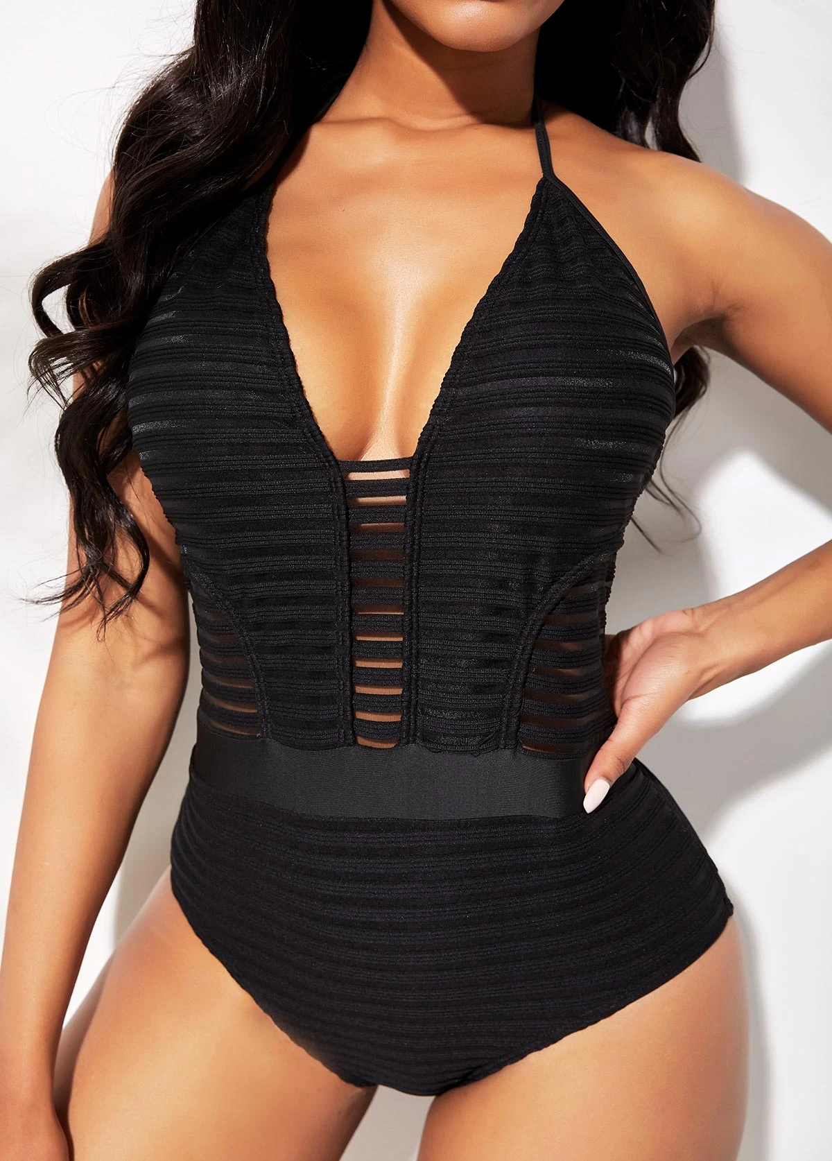Be the first to review “Halter Ladder Cutout Black One Piece Swimwear” Cancel reply