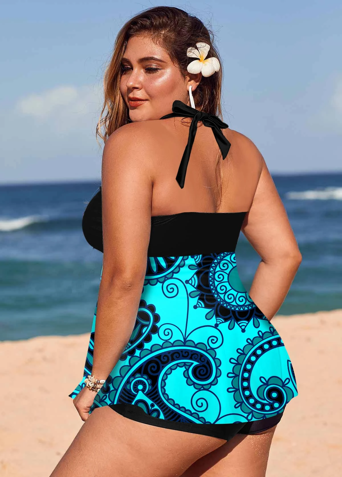 Halter Plus Size Paisley Print Swimdress And Shorts