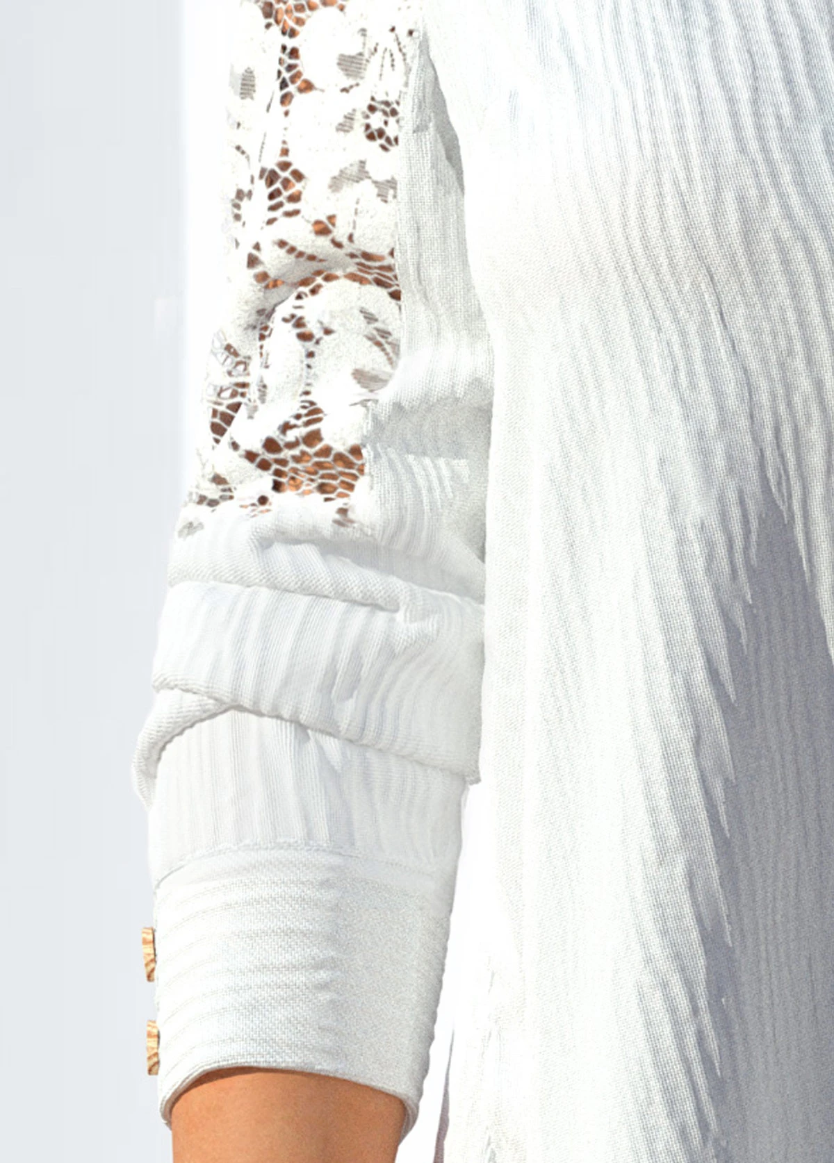 Be the first to review “Lace Stitching Button Detail White Blouse” Cancel reply