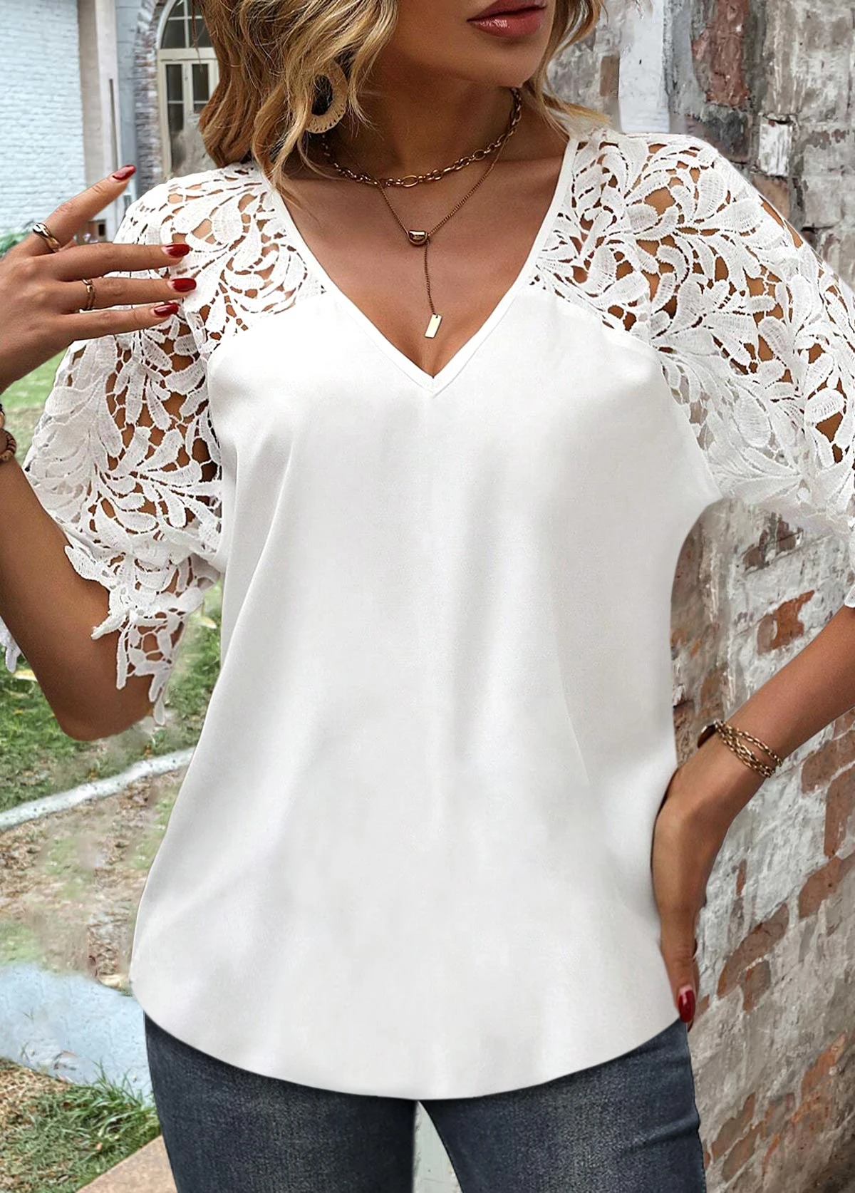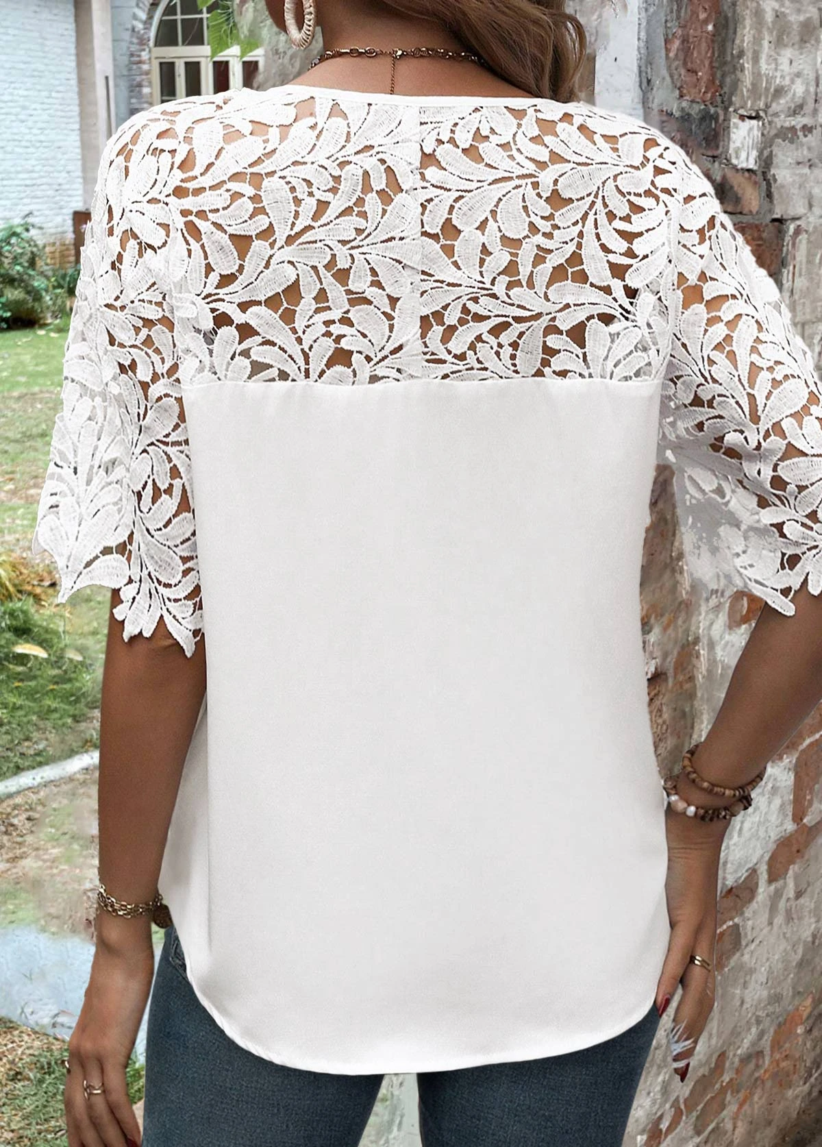 Be the first to review “Lace V Neck Half Sleeve White Blouse” Cancel reply