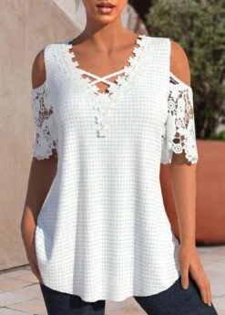 Be the first to review “Lace White V Neck Cold Shoulder T Shirt” Cancel reply