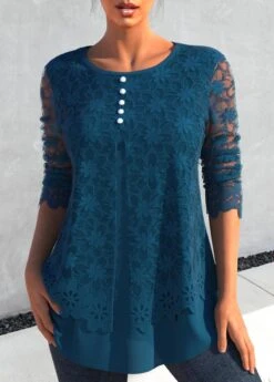 Be the first to review “Layered Blue Lace Stitching Long Sleeve Blouse” Cancel reply