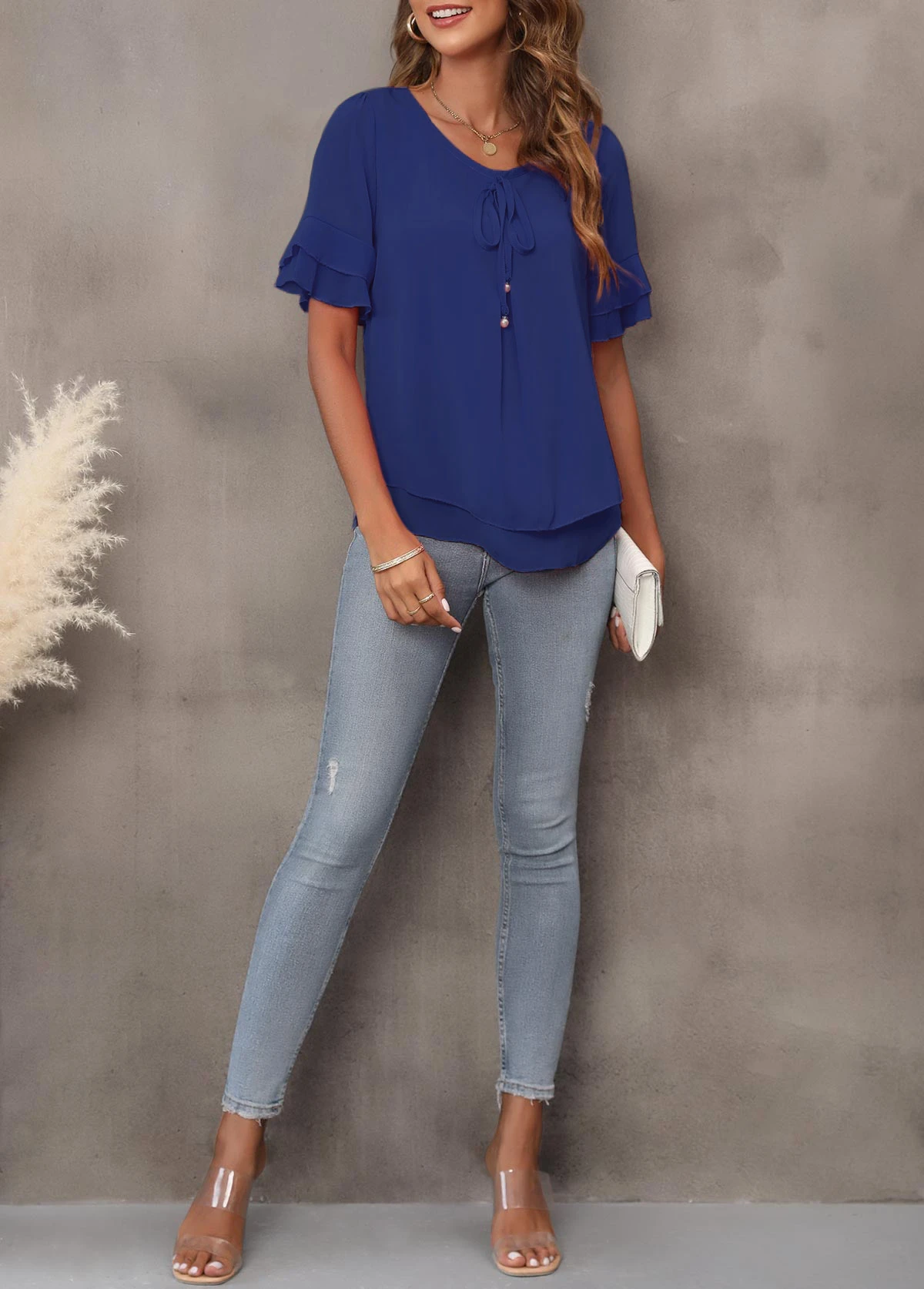 Be the first to review “Layered Hem Navy Blue Tie Front T Shirt” Cancel reply