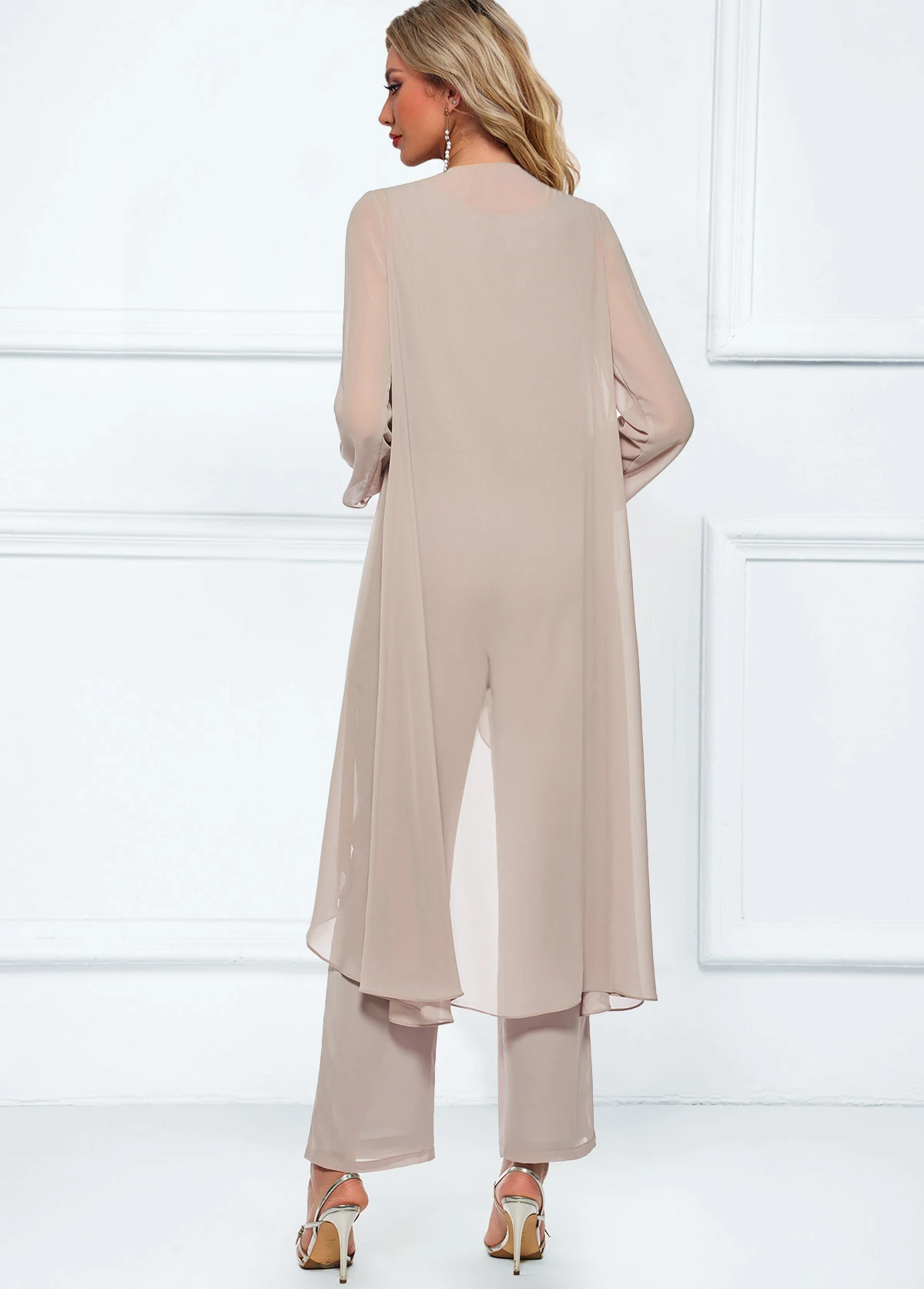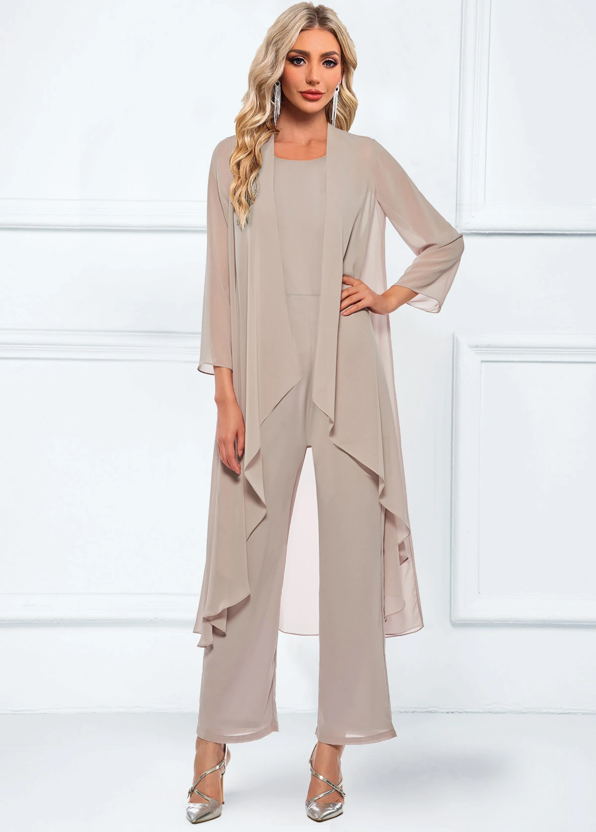 Lightweight Ankle Length Round Neck Light Camel Jumpsuit