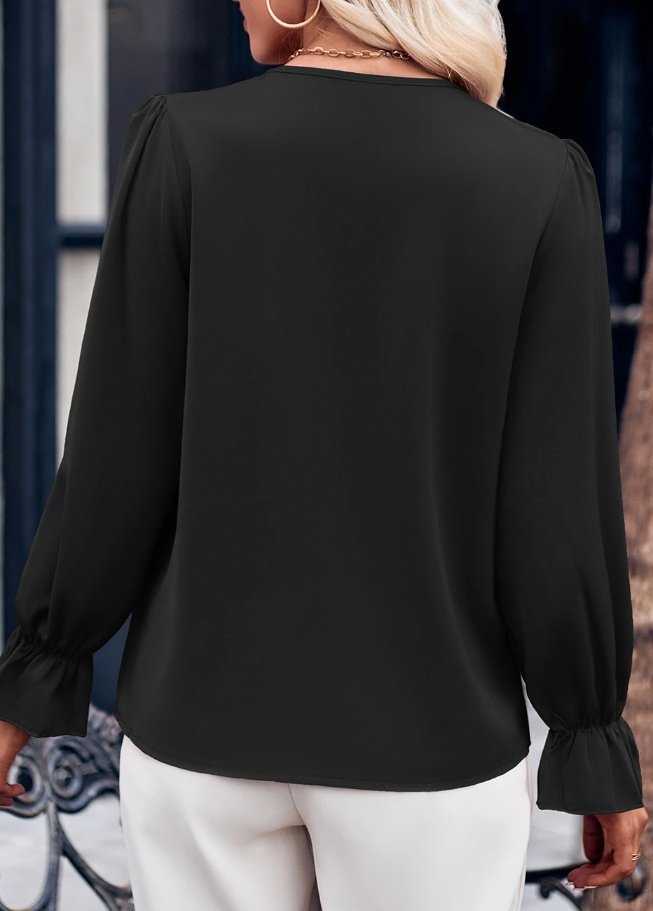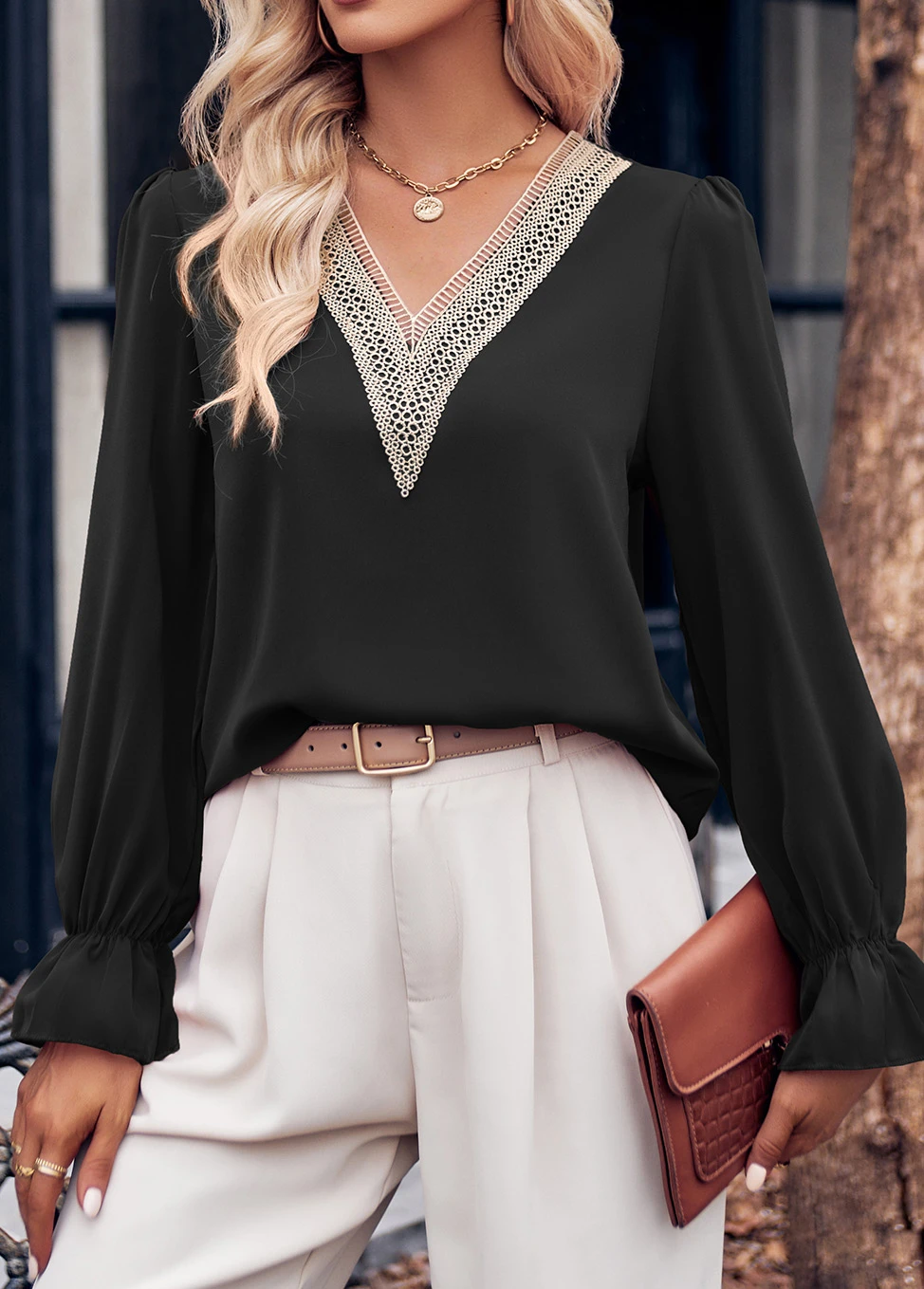 Be the first to review “Long Sleeve Patchwork Black V Neck Blouse” Cancel reply