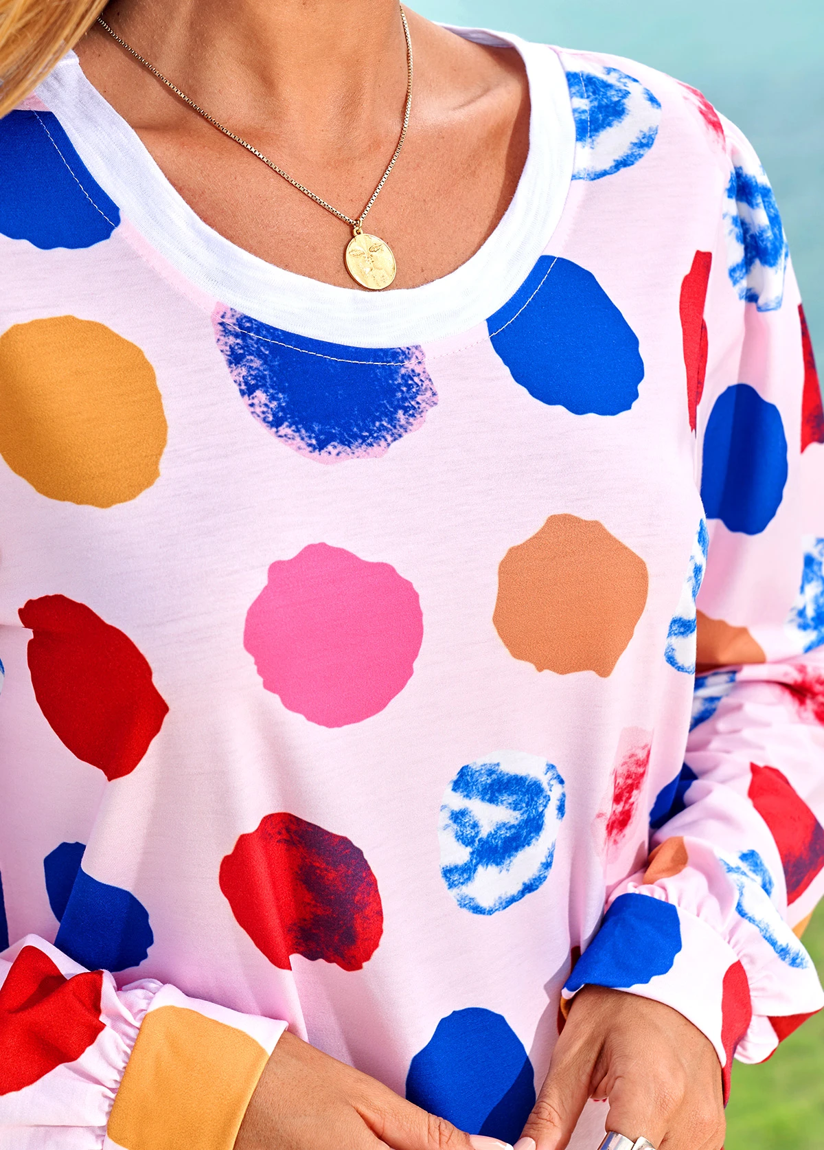 Long Sleeve Rainbow Color Polka Dot T Shirt