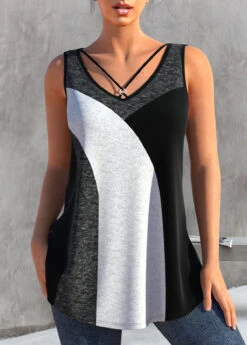 Metal Ring Contrast Dark Grey Marl Tank Top
