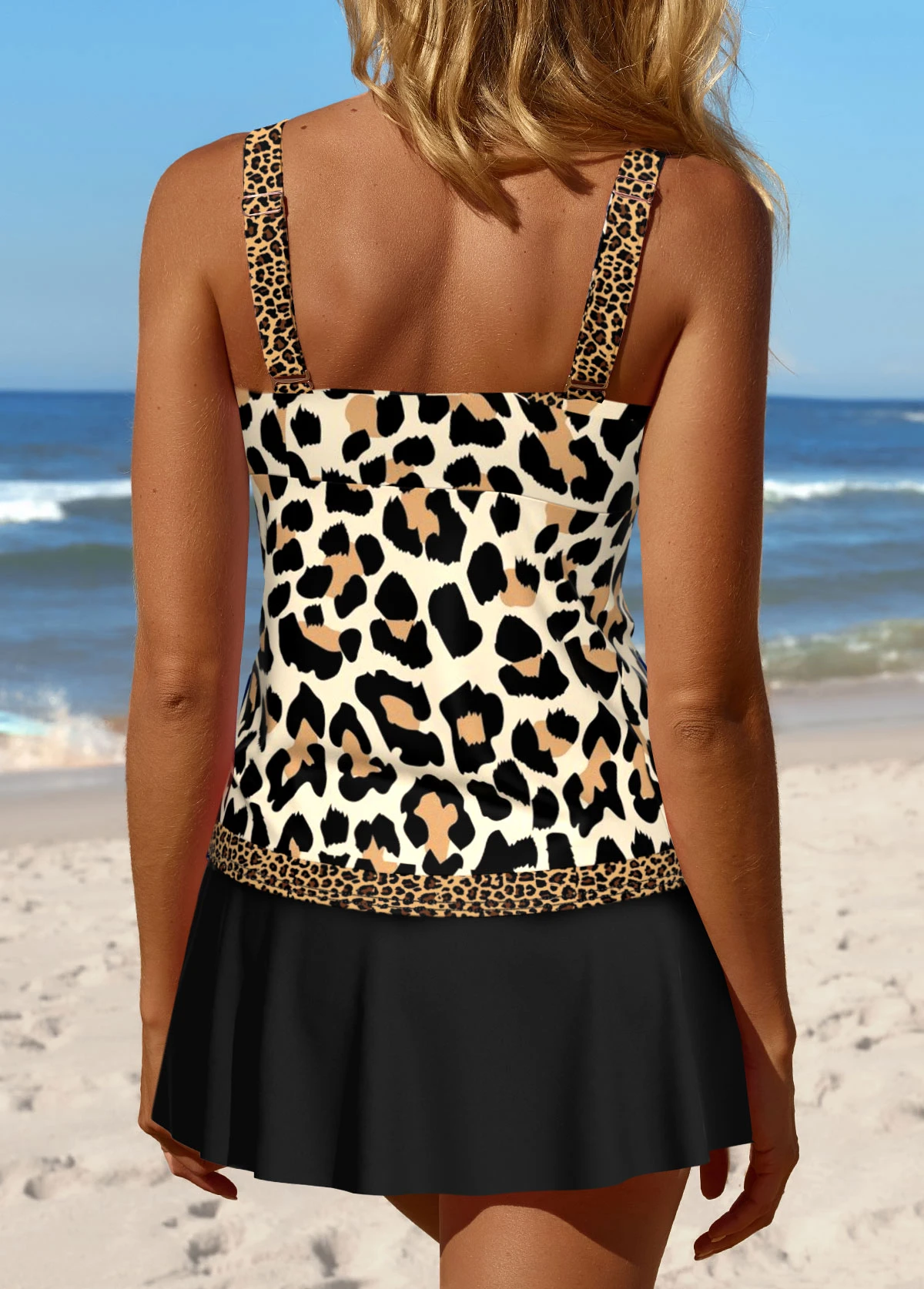 Mid Waisted Leopard Patchwork Black Tankini Set