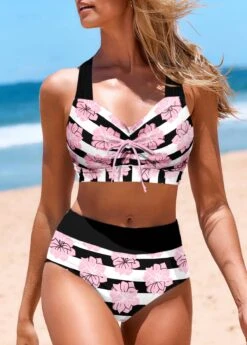 Be the first to review “Mid Waisted Striped Criss Cross Black Bikini Set” Cancel reply