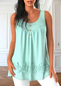 Be the first to review “Mint Green Scoop Neck Patchwork Tank Top” Cancel reply