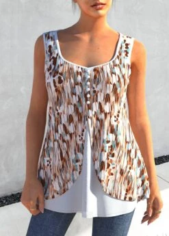 Be the first to review “Multi Color Decorative Button Graffiti Print Tank Top” Cancel reply
