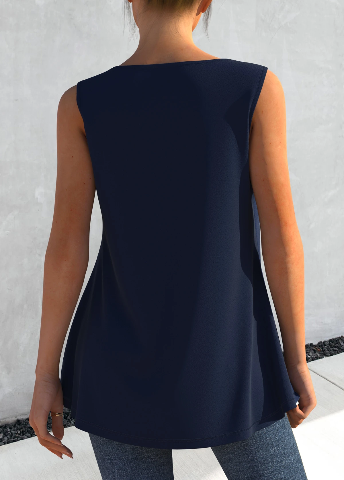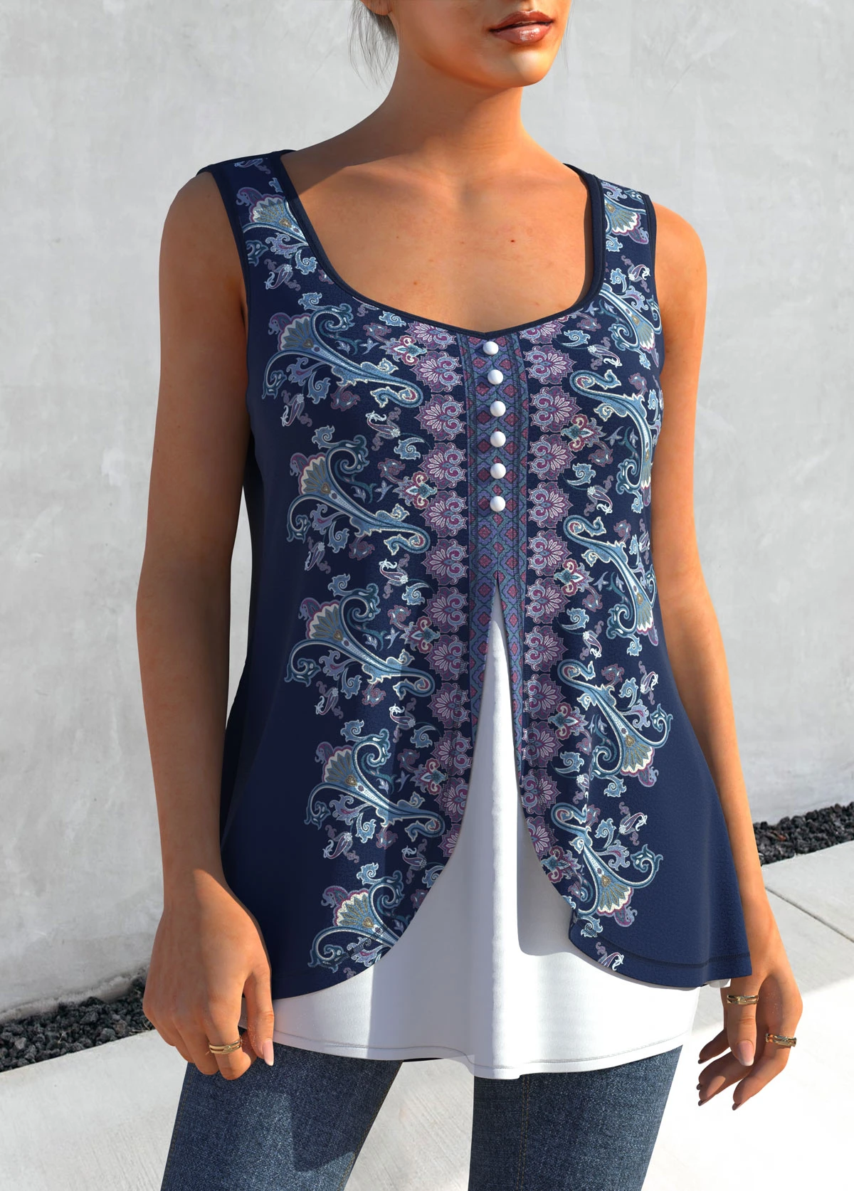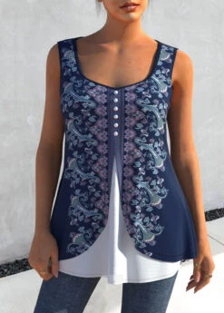Navy Blue Faux Two Piece Tribal Print Tank Top