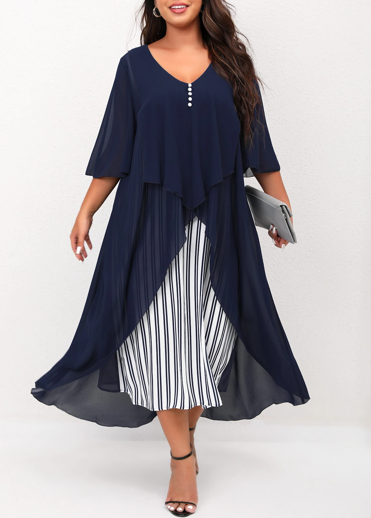 Be the first to review “Navy Blue Striped Plus Size V Neck Dress” Cancel reply