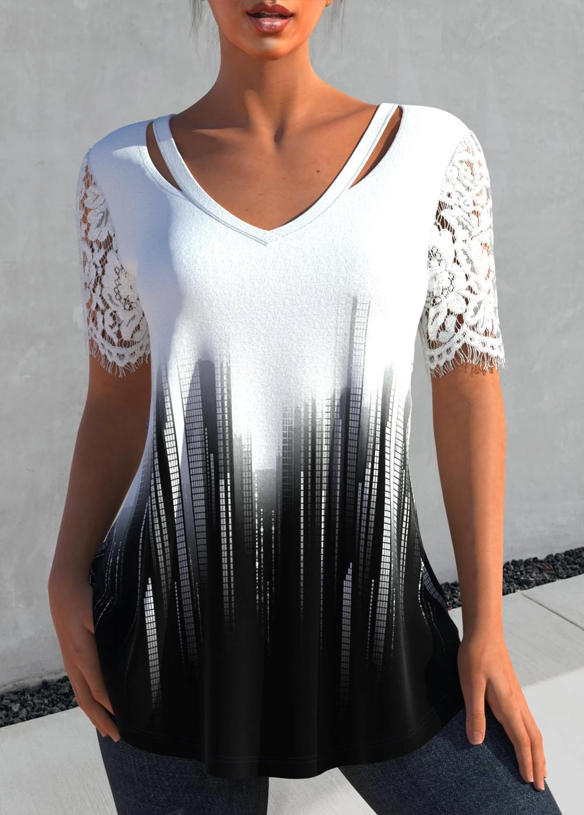 Be the first to review “Ombre Patchwork White V Neck T Shirt” Cancel reply