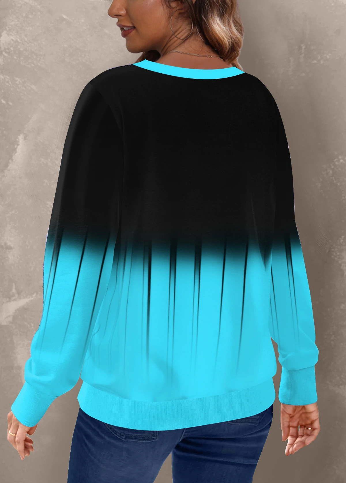 Be the first to review “Ombre V Neck Cyan Long Sleeve Sweatshirt” Cancel reply