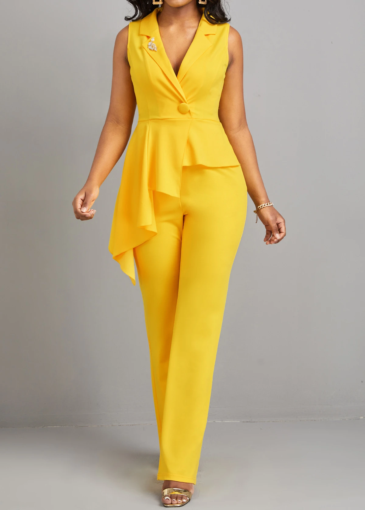 Be the first to review “Patchwork Yellow Button Detail Asymmetric Jumpsuit” Cancel reply