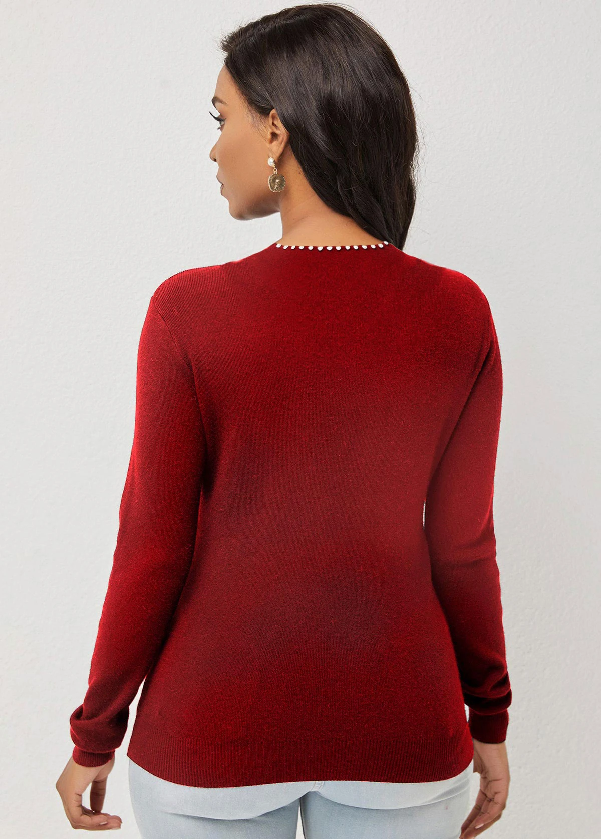Be the first to review “Pearl Detail Keyhole Neckline Wine Red Sweater” Cancel reply