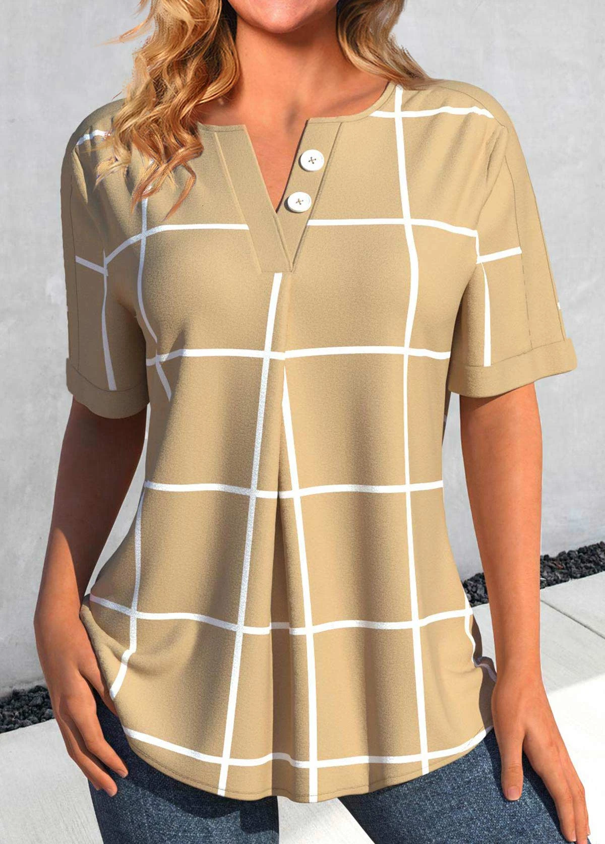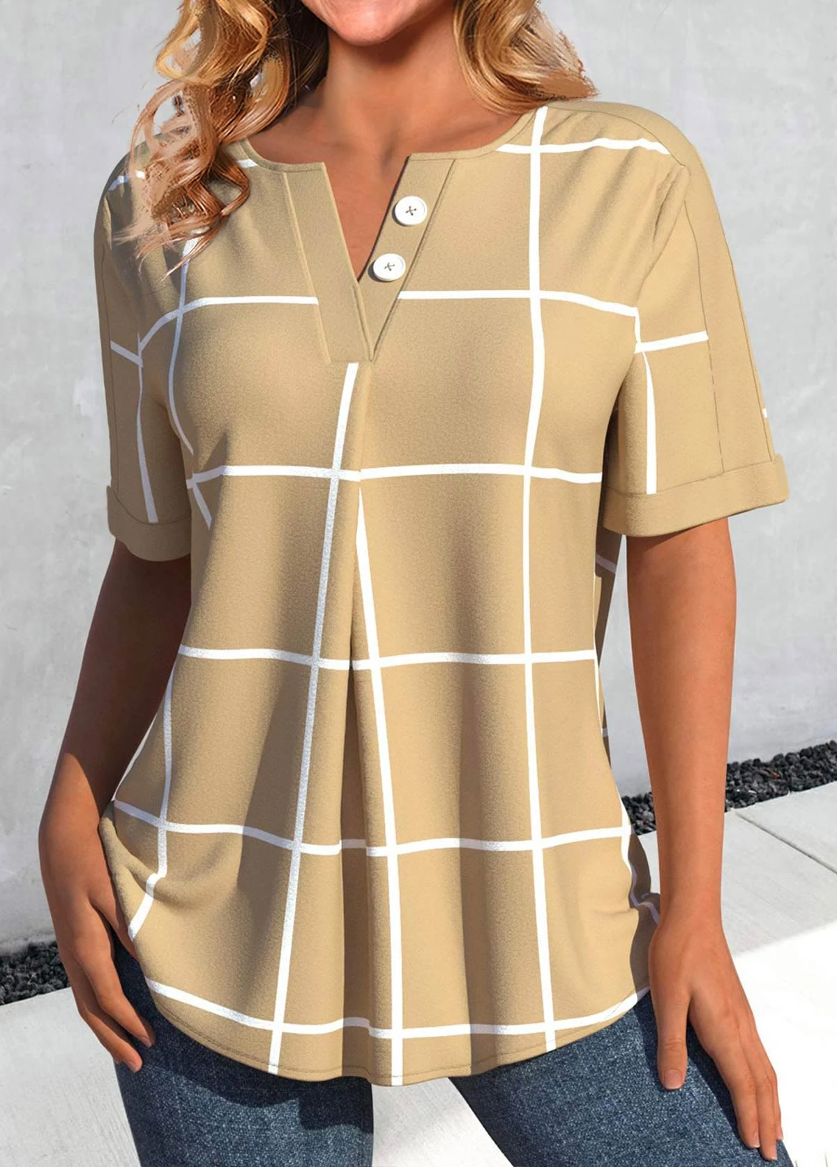 Be the first to review “Plaid Button Light Camel Split Neck Blouse” Cancel reply