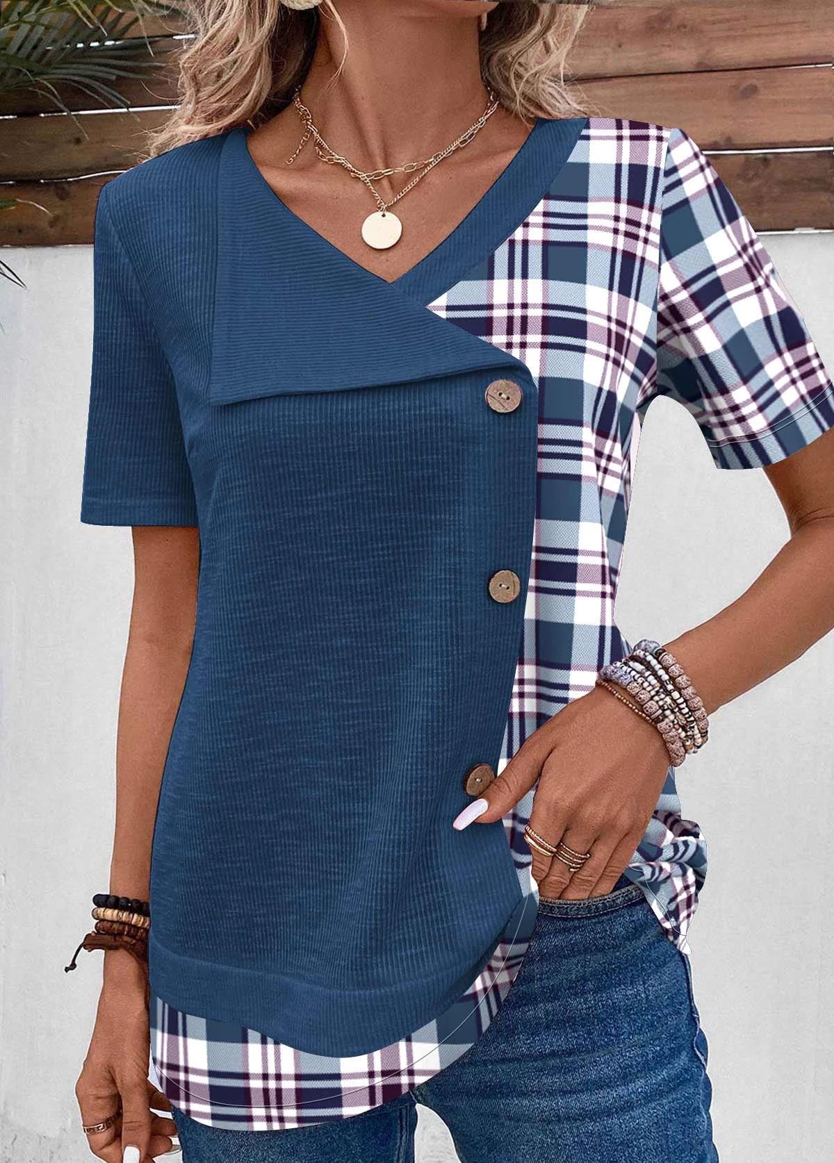 Be the first to review “Plus Size Blue Patchwork Plaid T Shirt” Cancel reply