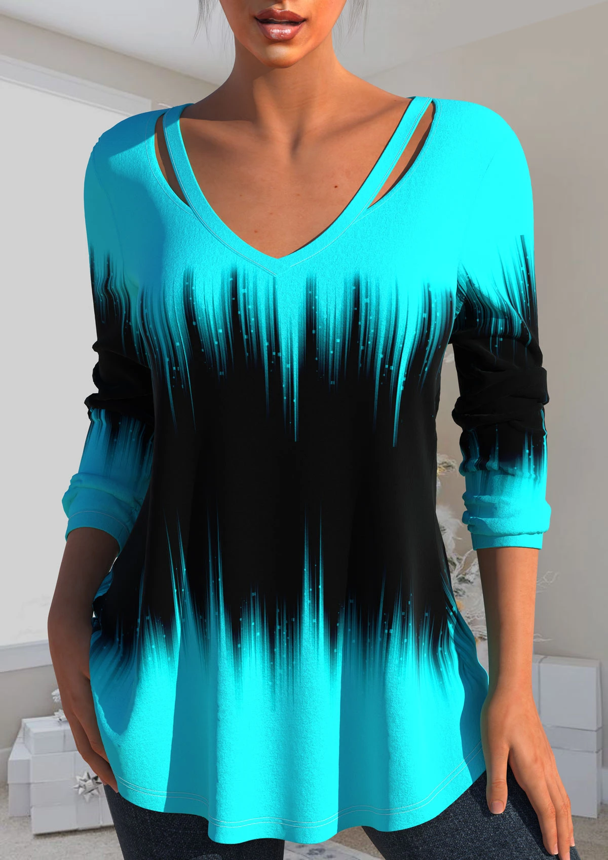 Plus Size Cyan Ombre Long Sleeve T Shirt