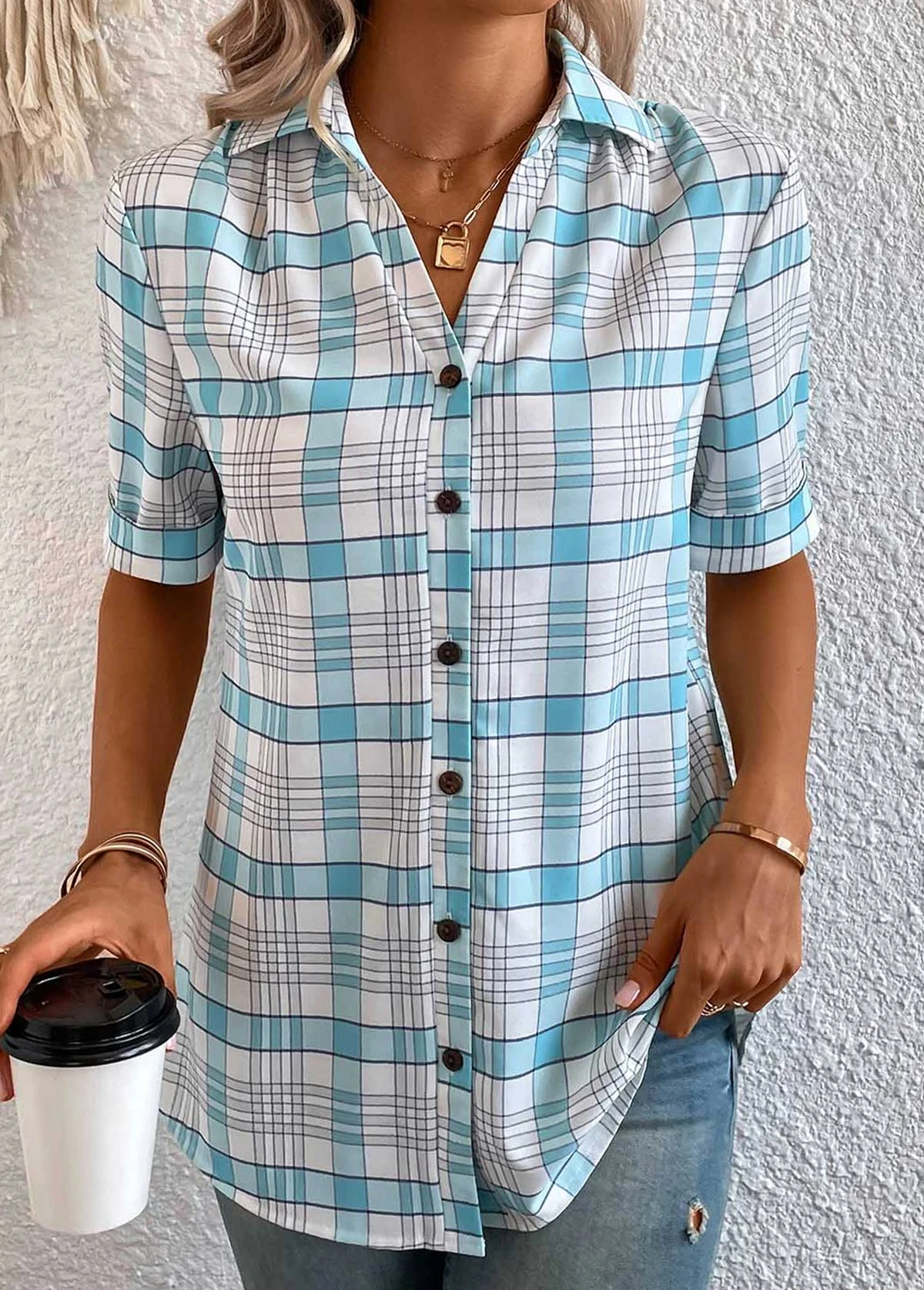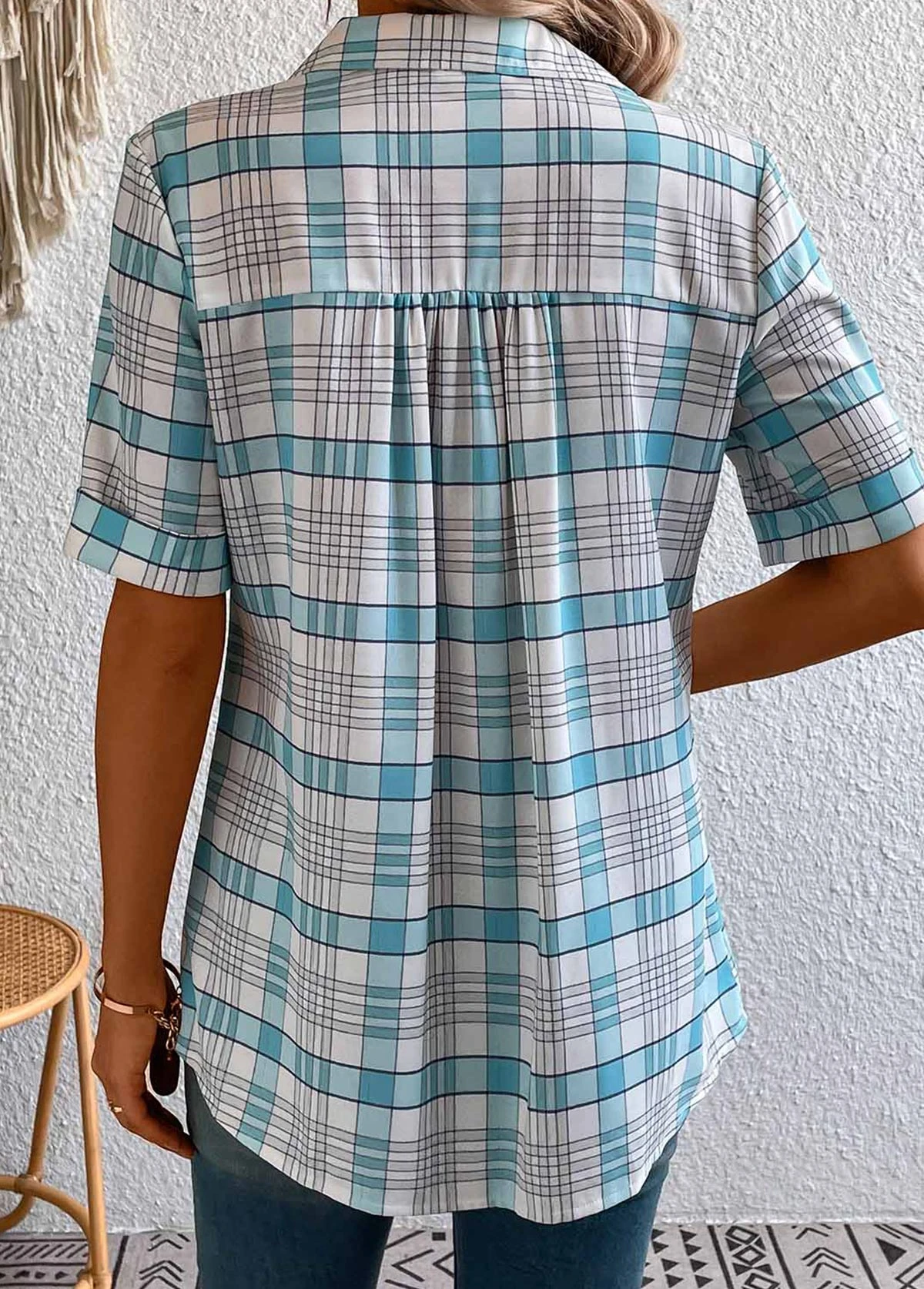 Be the first to review “Plus Size Light Blue Button Plaid Blouse” Cancel reply