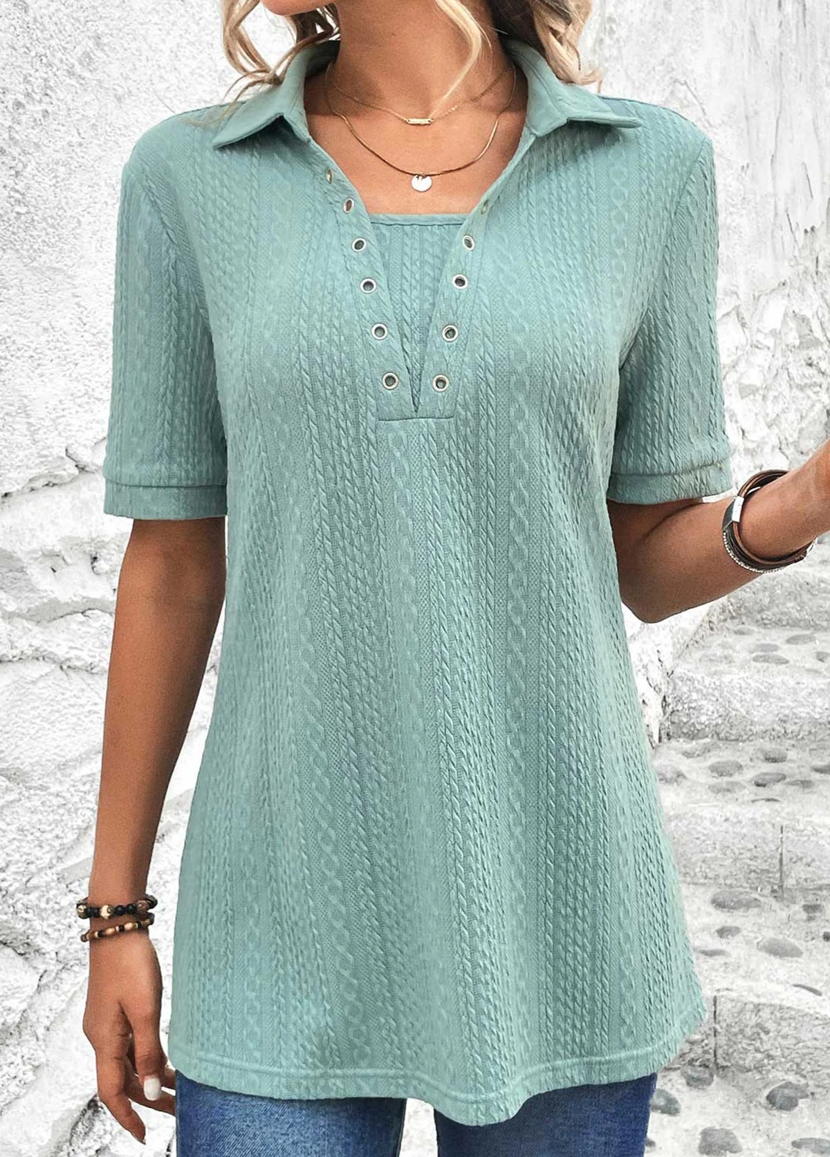 Be the first to review “Plus Size Mint Green Eyelet Short Sleeve Blouse” Cancel reply