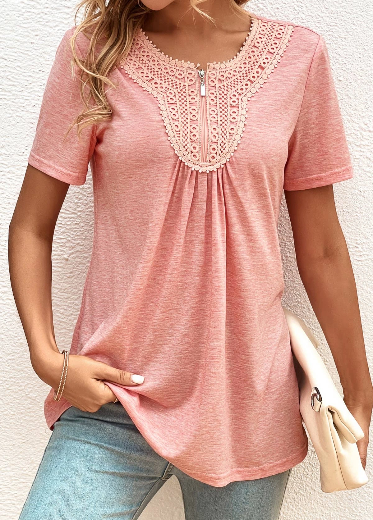 Plus Size Pink Zipper Short Sleeve T Shirt