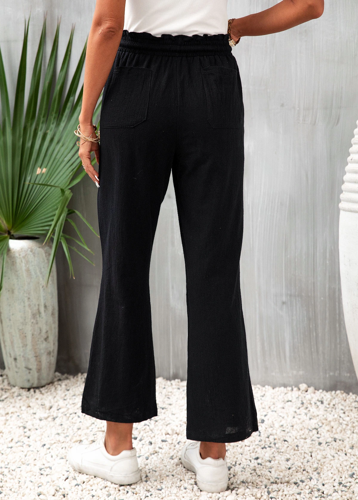 Be the first to review “Pocket Flare Leg Elastic Waist Black Pants” Cancel reply