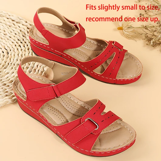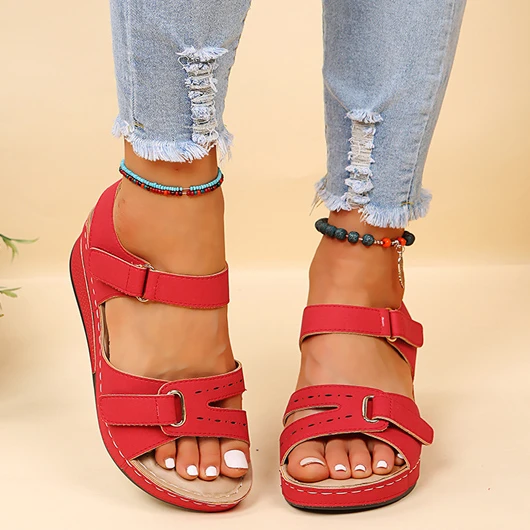 Be the first to review “Red Velcro Peep Toe Mid Heel Sandals” Cancel reply