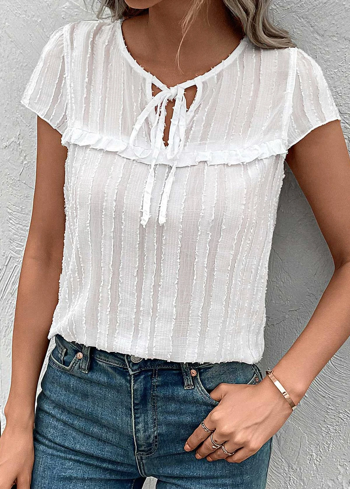 Be the first to review “Round Neck Tie White Short Sleeve Blouse” Cancel reply
