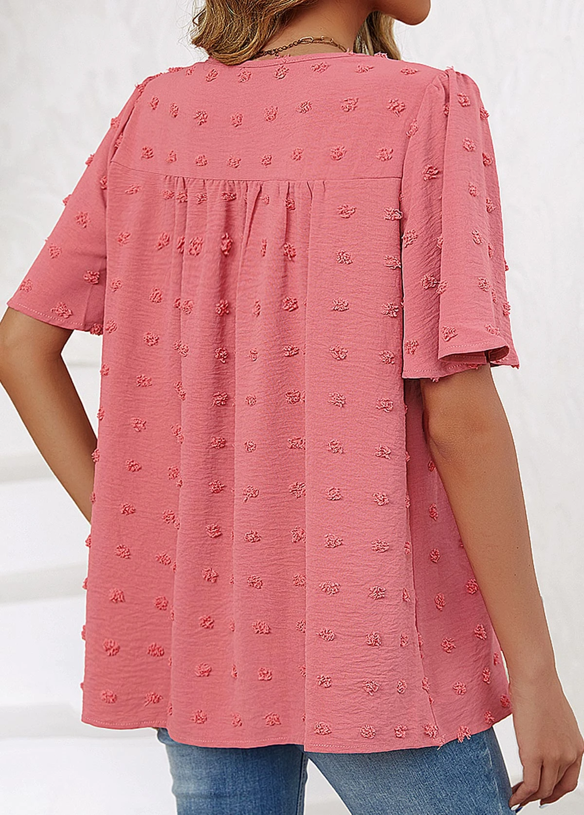 Be the first to review “Ruched Round Neck Short Sleeve Pink T Shirt” Cancel reply
