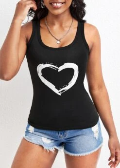Scoop Neck Black Strappy Tank Top