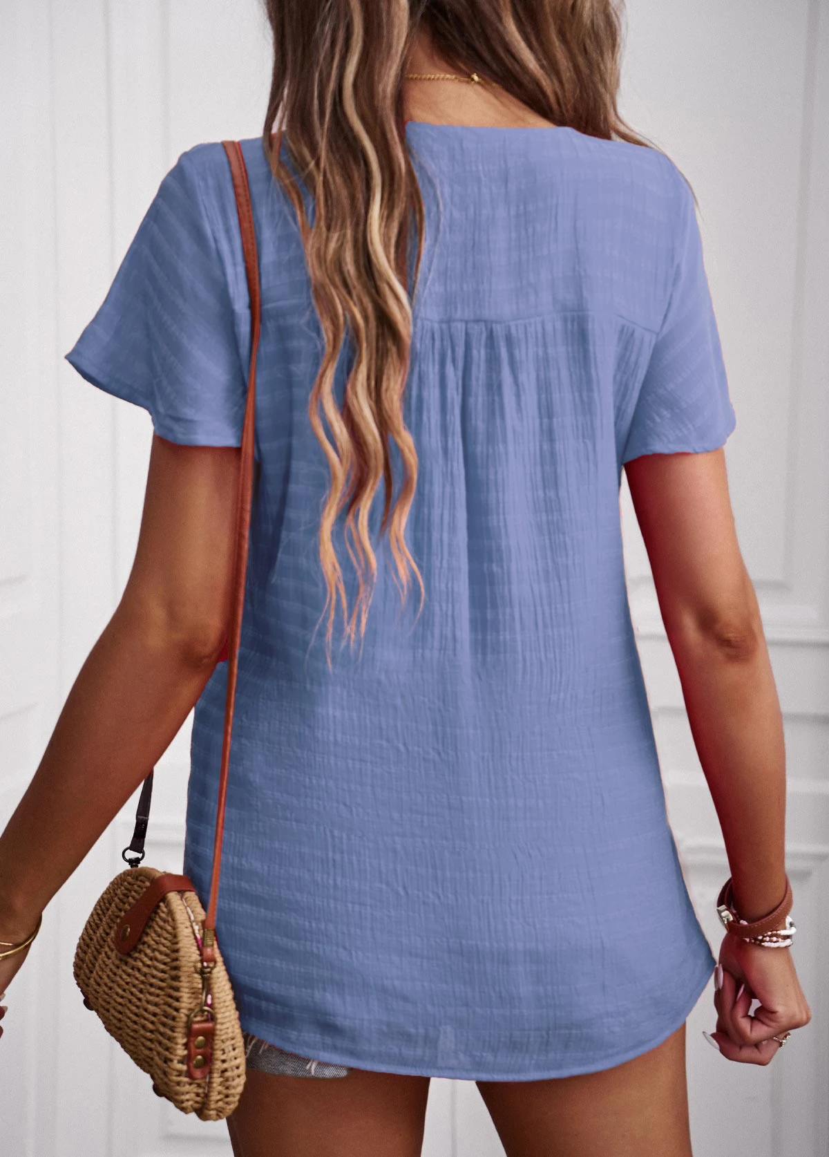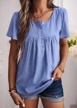 Be the first to review “Scoop Neck Button Dusty Blue T Shirt” Cancel reply