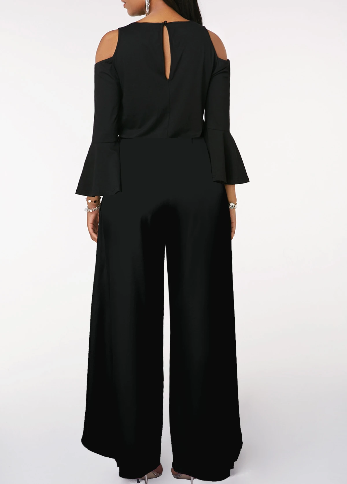 Sequin Long Sleeve Black V Neck Jumpsuit